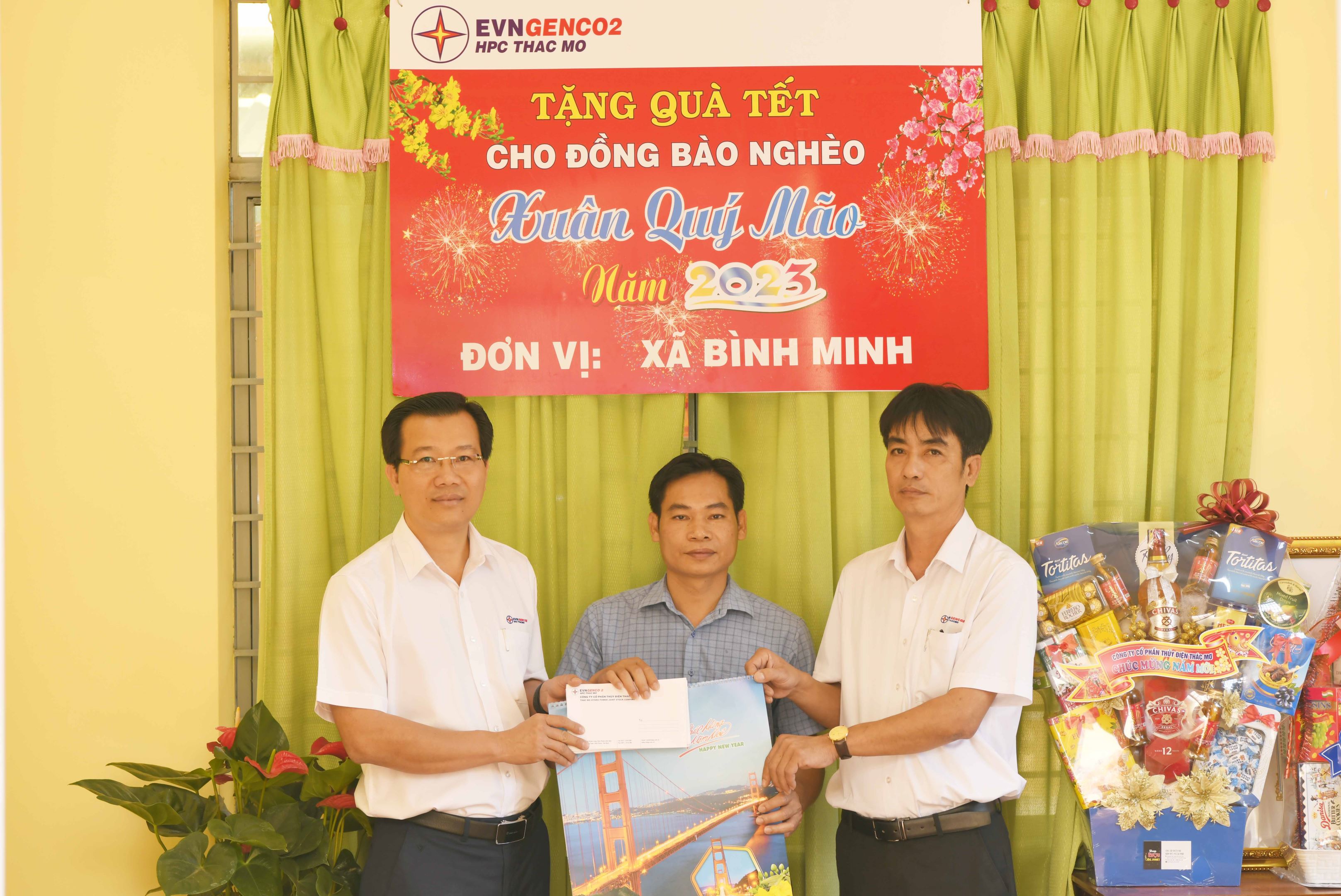 Lãnh đạo UBND xã Bình Minh, huyện Bù Đăng, thay mặt cho đồng bào nghèo, nhận quà Tết do TMP trao tặng