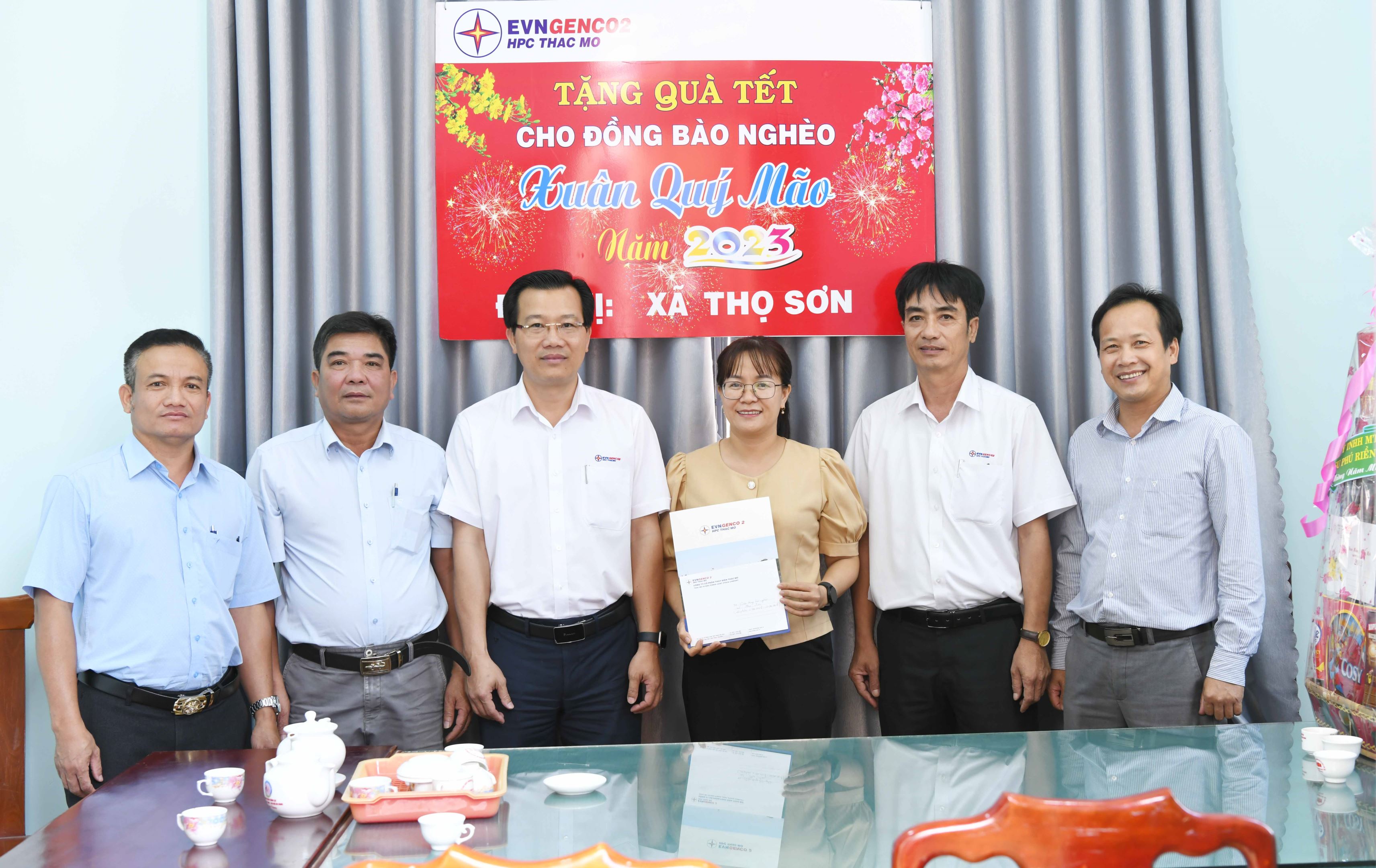 Lãnh đạo UBND xã Thọ Sơn, huyện Bù Đăng, thay mặt cho đồng bào nghèo, nhận quà Tết do TMP trao tặng