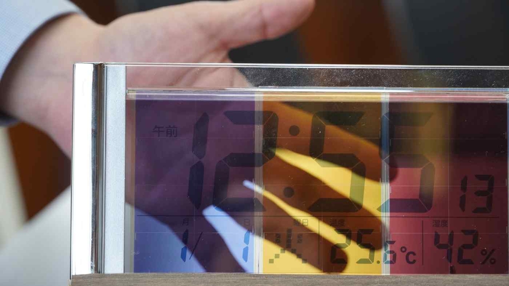 Pin mặt trời của Ricoh có thể tích hợp trong các thiết bị trong suốt và tạo ra điện bằng cách nhận ánh sáng từ hai phía. Ảnh: Ryosuke Eguchi.