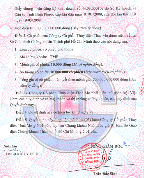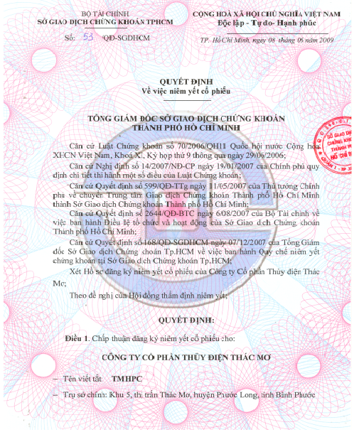 Quyết định về niêm yết cổ phiếu