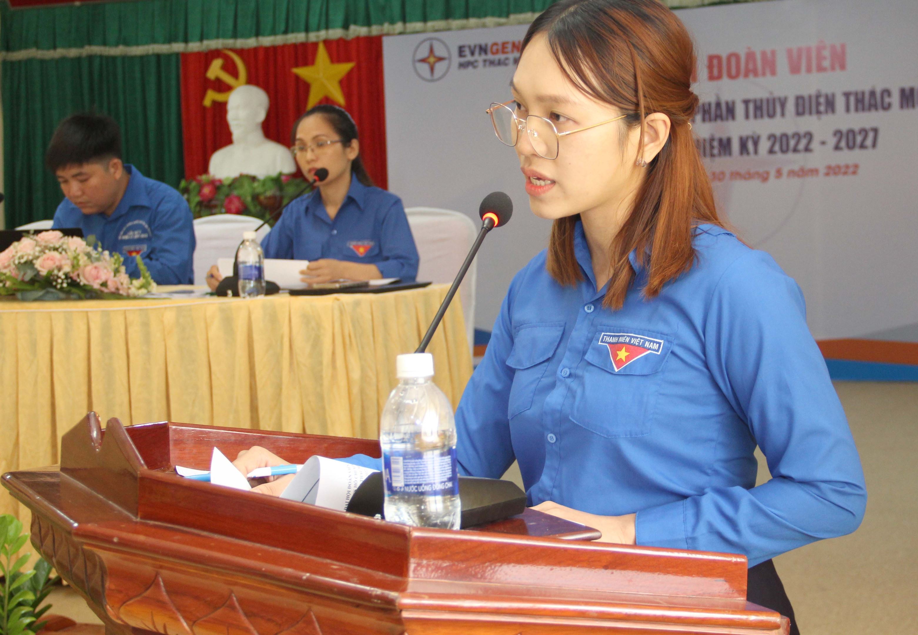 Đ/c Hoàng Thị Ngọc Bích – Phó bí thư Đoàn báo cáo trước Đại hội