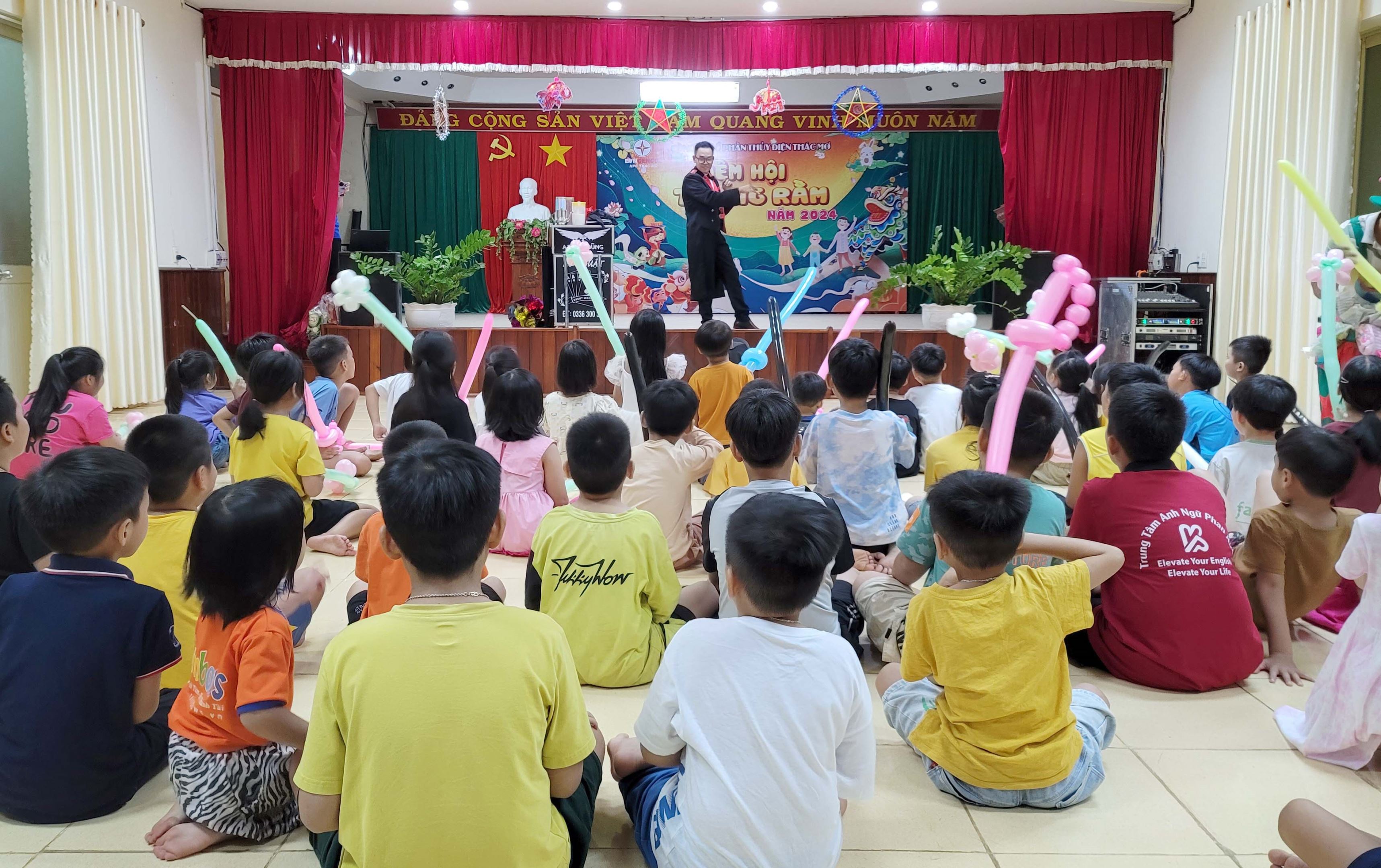 Tuy điều kiện thời tiết không thuận lợi, nhưng các em vẫn đến rất sớm háo hức chờ đón đêm hội. Trong chương trình, các em được hoà mình vào không khí vui tươi, rộn ràng của nhiều hoạt động sôi nổi như: Tham gia trò chơi tập thể, tạo hình bong bóng nghệ thuật, xem ảo thuật, trả lời câu hỏi đố vui có thưởng, nhận quà trung thu…