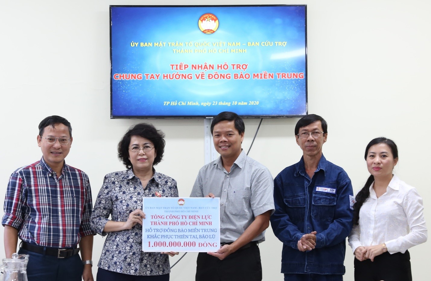 Tổng công ty Điện lực TP. Hồ Chính Minh trao 1,0 tỷ đồng ủng hộ đồng bào miền Trung bị thiệt hại do lũ lụt