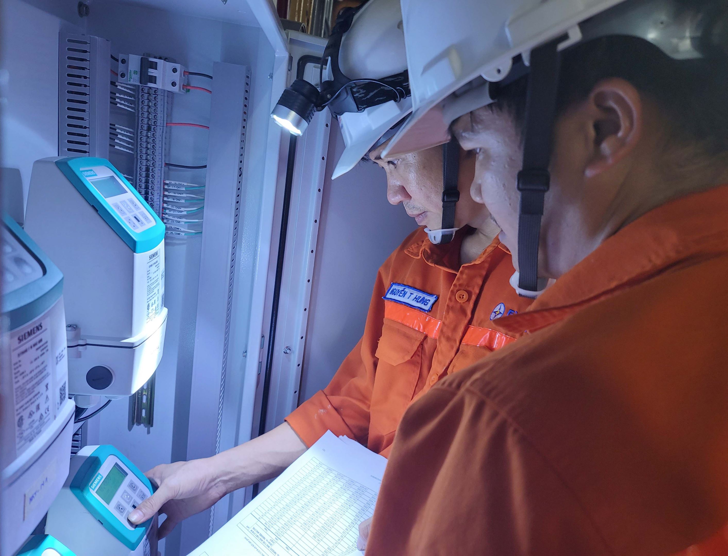 Ông Bùi Văn Phát cùng cộng sự kiểm tra thiết bị tại hiện trường
