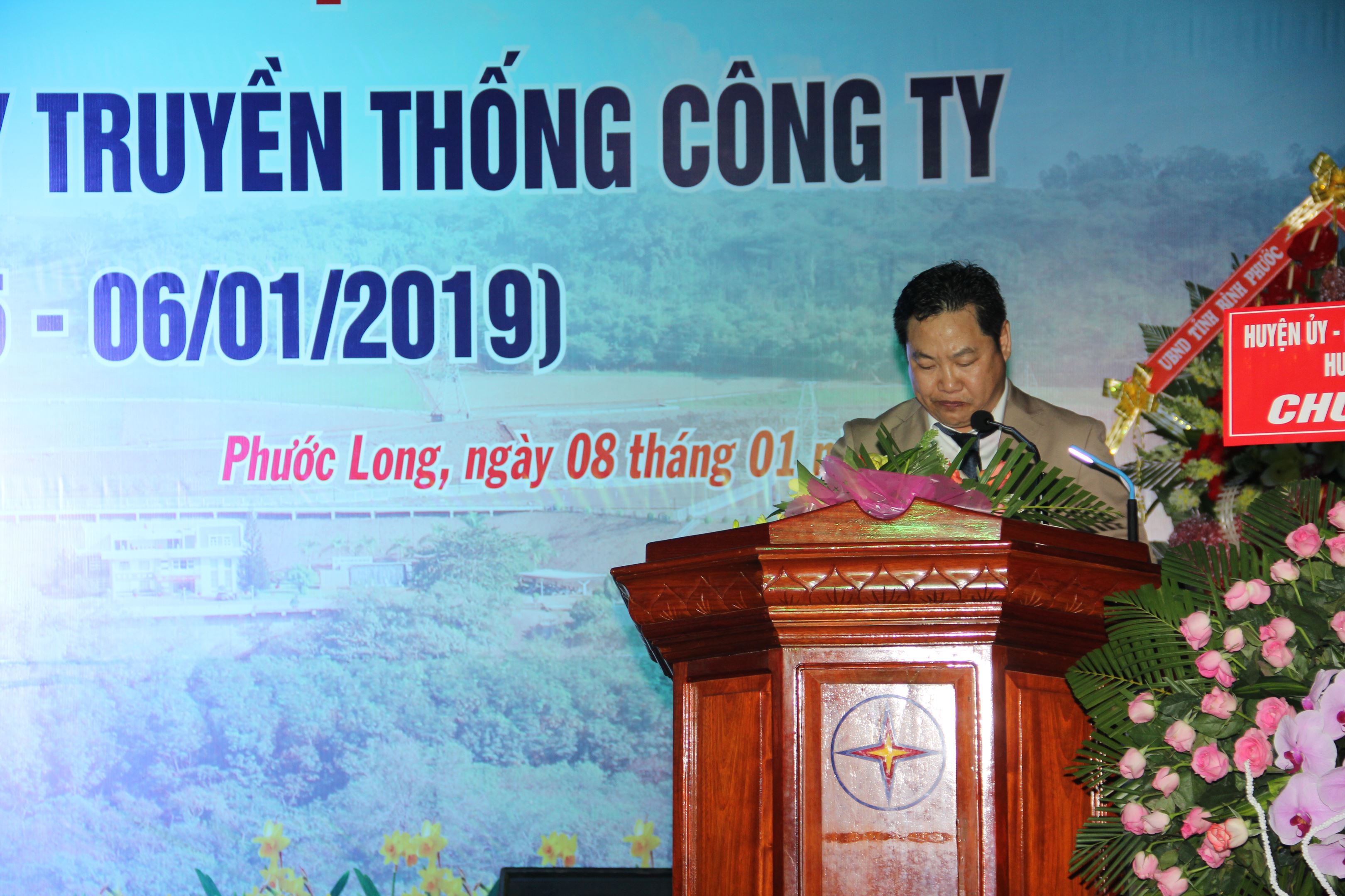 Phát biểu trong ngày họp mặt truyền thống, Tổng Giám đốc Lê Minh Tuấn đã bồi hồi xúc động khi ôn lại những tháng ngày khó khăn lúc bắt đầu xây dựng. Ông cũng đã điểm qua những thành tích mà tập thể công ty đã đạt được: Huân chương lao động hàng III năm 2002, Huân chương lao động hàng II năm 2009,Huân chương lao động hàng I năm 2015 và nhiều bằng khen, cờ thi đua của Bộ, Ngành và UBND tỉnh Bình Phước. Hơn nữa, ông cũng không quên gửi lời tri ân sâu sắc đến các đồng chí lãnh đạo Đảng, chính quyền địa phương tỉnh Bình Phước, thị xã Phước Long, huyện Bù Gia Mập, huyện Bù Đăng, lãnh đạo các xã phường, các đối tác, các đơn vị , cá nhân đóng góp xây dựng công trình, các bậc tiền bối và các thế hệ CBCNV công ty.