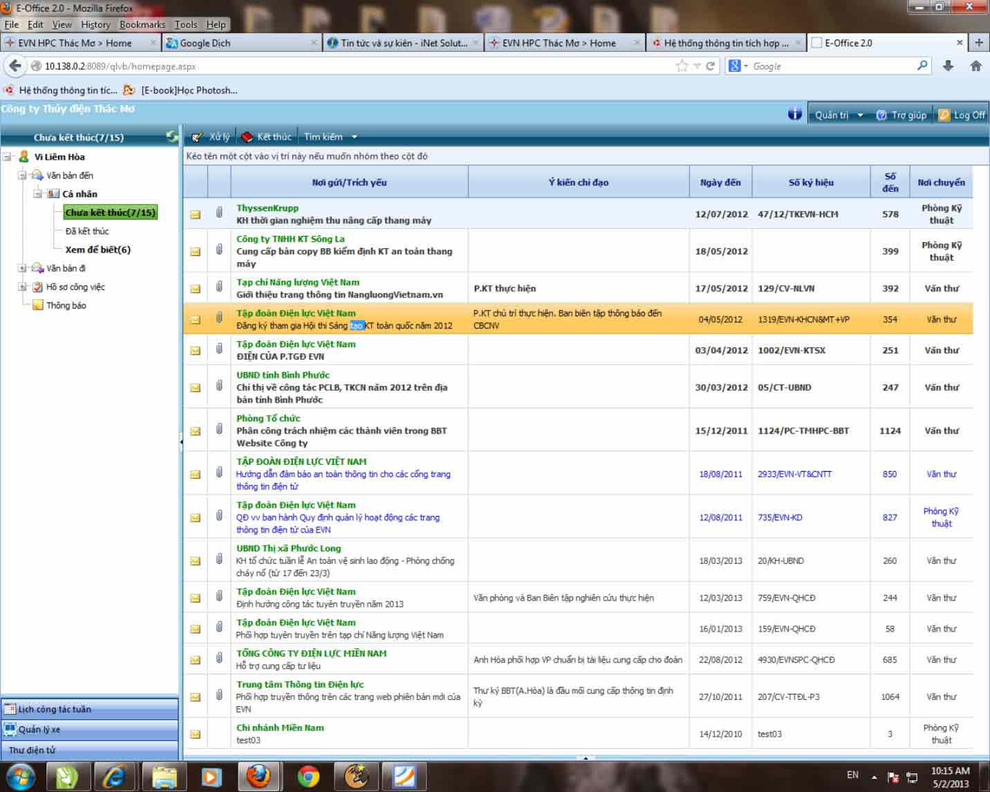 Giao diện EVN-e.OFFICE sử dụng tại Công ty