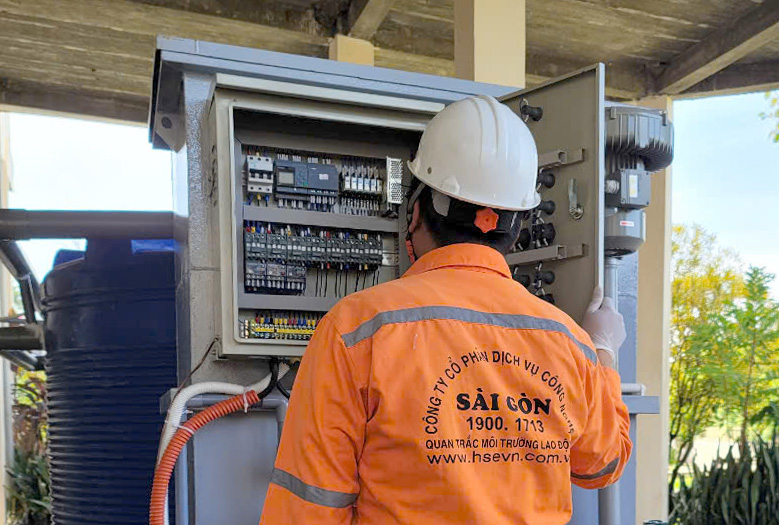 Kỹ thuật viên môi trường làm việc tại trạm xử lý nước