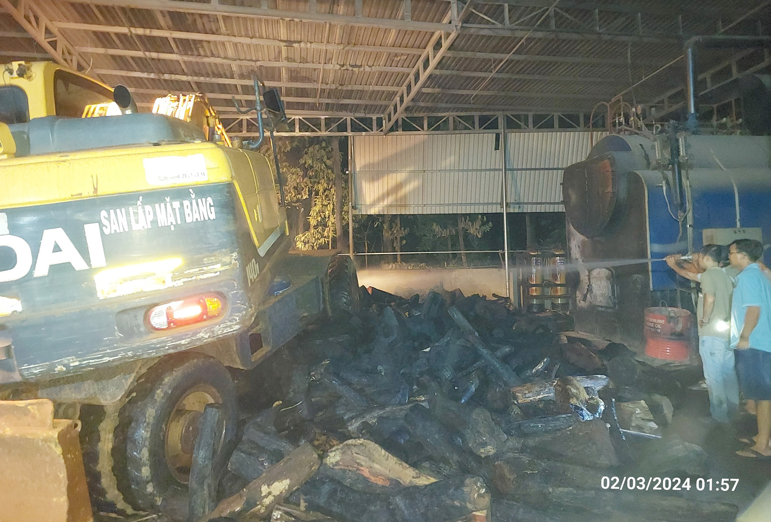 Khoảng 23h20 ngày 01/3, nhận được điện báo của người dân địa phương phát hiện khói đen bốc lên nghi ngút, bao trùm kho chứa xưởng điều Dũng Tiến Phát tại khu phố 1, phường Phước Bình. Đội PCCC và nhóm trực TMP đã nhanh chóng chuyền xe chữa cháy lưu động và các bình chữa cháy MZ4 đến hiện trường đám cháy.