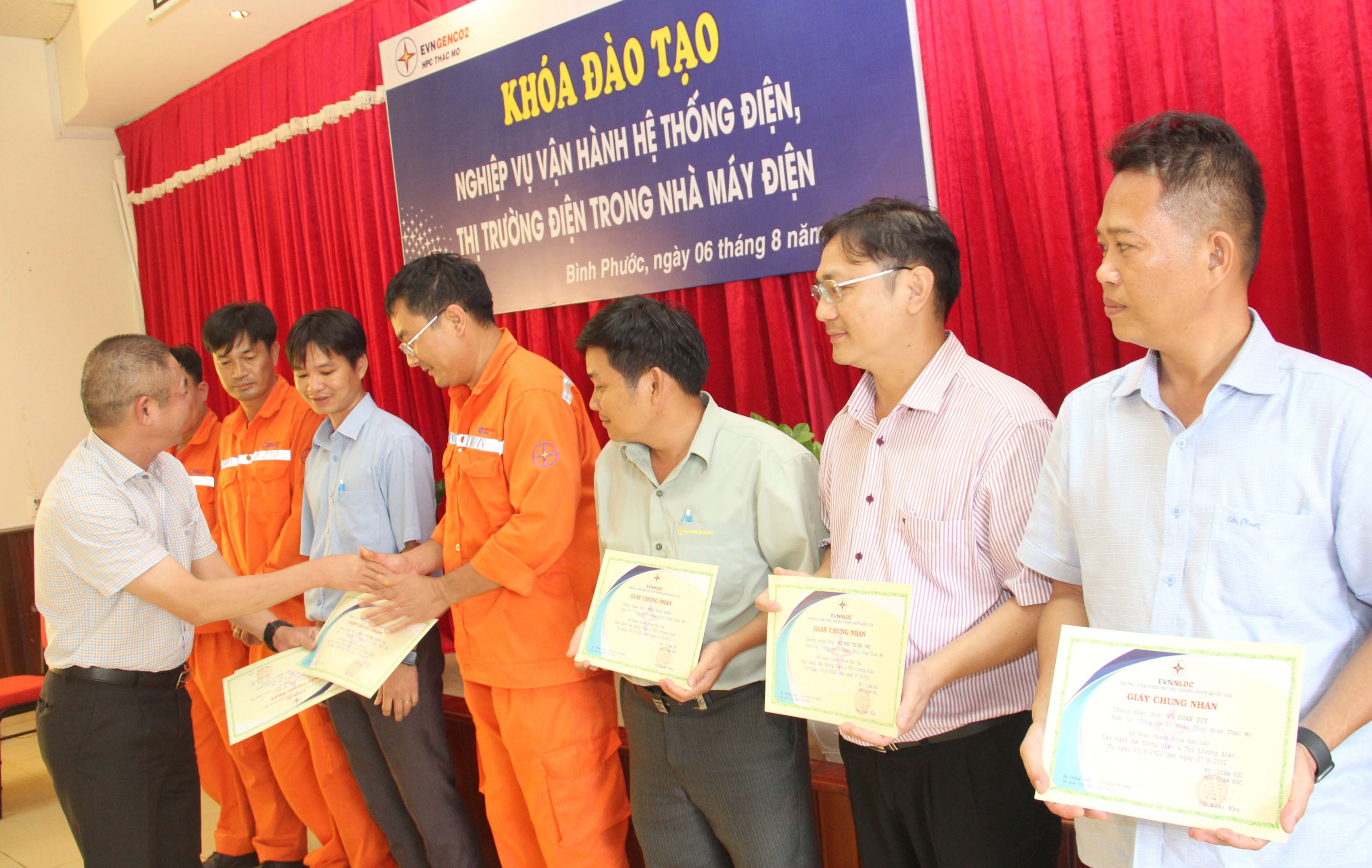 Kết thúc khóa học, ông Vũ Xuân Khu, Phó Giám đốc Trung tâm Điều độ Hệ thống điện Quốc gia, trao giấy chứng nhận cho các học viên hoàn thành khóa học.