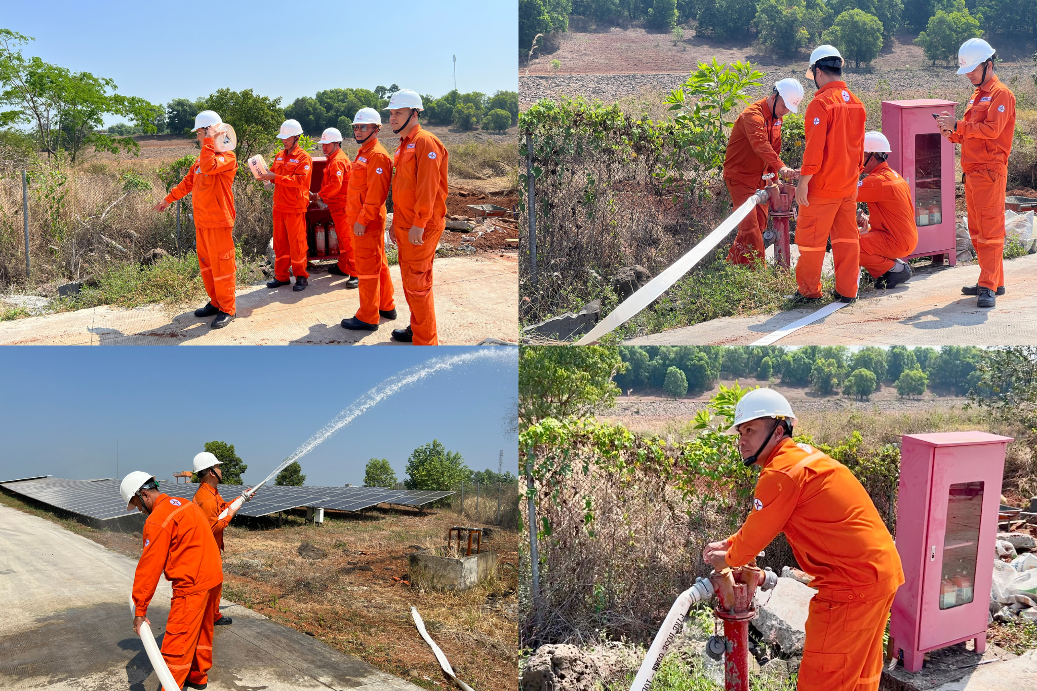 Lực lượng chữa cháy tham gia diễn tập tại khu vực trạm inverter IS03 Nhà máy Điện mặt trời Thác Mơ