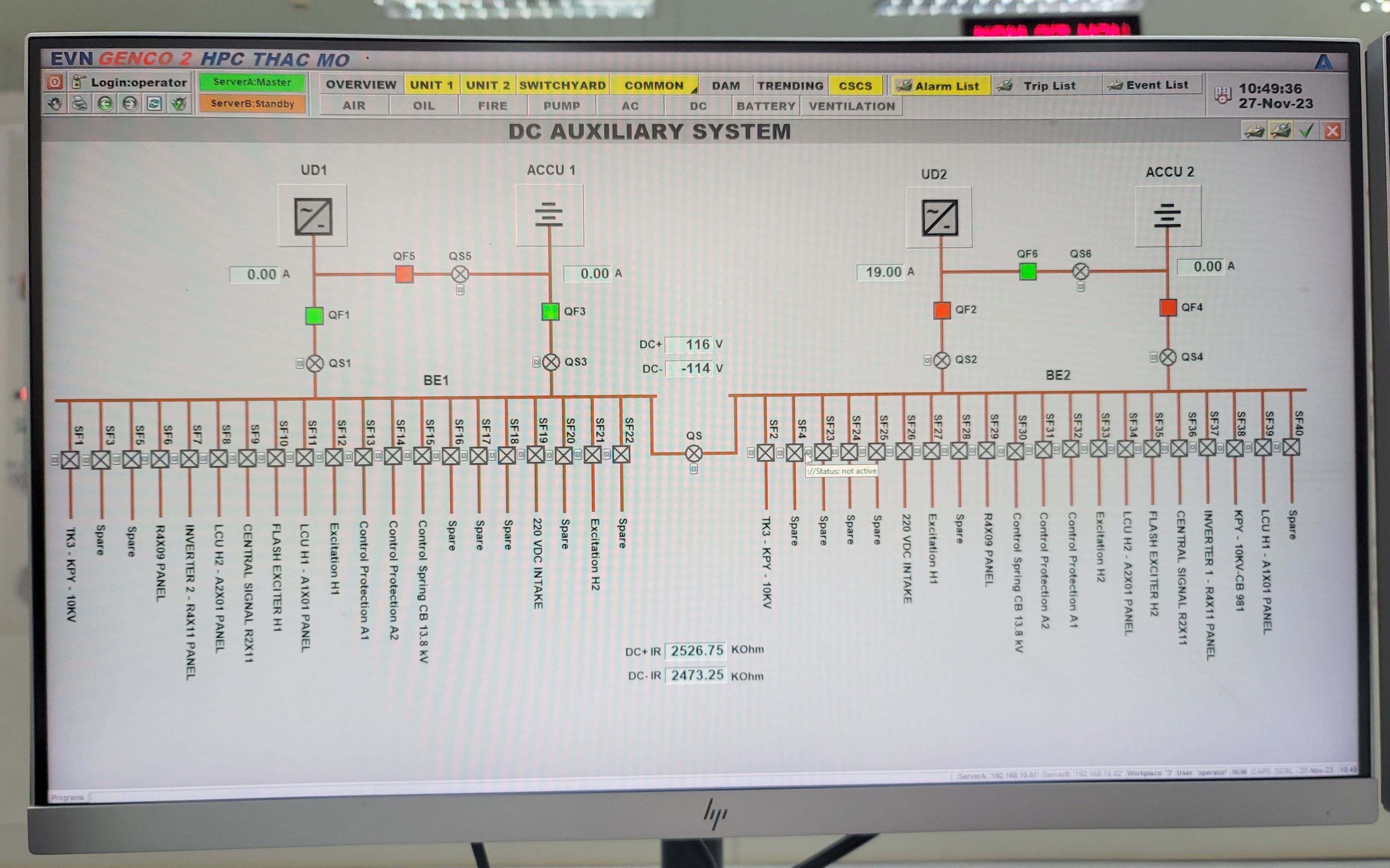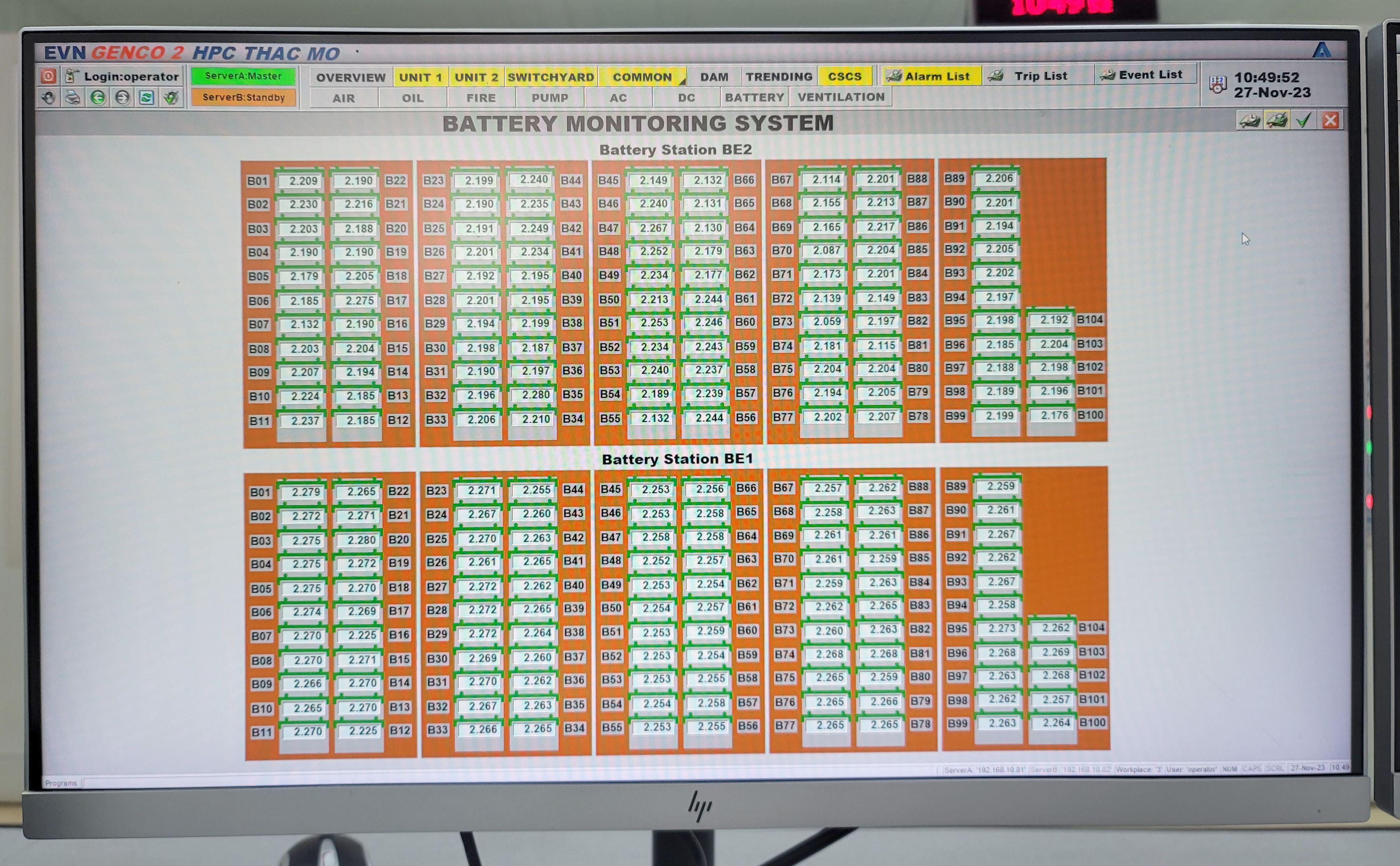Với mục đích nâng cao độ tin cậy hệ thống nguồn nuôi DC 220V, lực lượng kỹ thuật TMP đề xuất thay thế bình ắc quy hở bằng bình ắc quy kín, lựa chọn sản phẩm đáp ứng tiêu chuẩn công nghiệp, đảm bảo các thông số kỹ thuật vận hành; đồng thời thiết kế, lắp đặt module giám sát ắc quy của hãng DataTaker để giám sát điện áp. Hệ thống giám sát “Tình trang sức khỏe” của từng bình ắc quy trong hệ thống ắc quy được ứng dụng công nghệ 4.0 thông qua các module CEM. Một module CEM giám sát được tối đa 20 bình ắc quy thông số về điện áp, số giờ vận hành.v.v. Các module CEM được kết nối với nhau và kết nối với bộ quản lý tập trung DT85 qua chuẩn giao tiếp RS485. Hệ thống giám sát ắc quy bao gồm 6 Module CEM và 1 bộ quản lý trung tâm DT85, được giao tiếp với nhau qua chuẩn giao tiếp RS485.