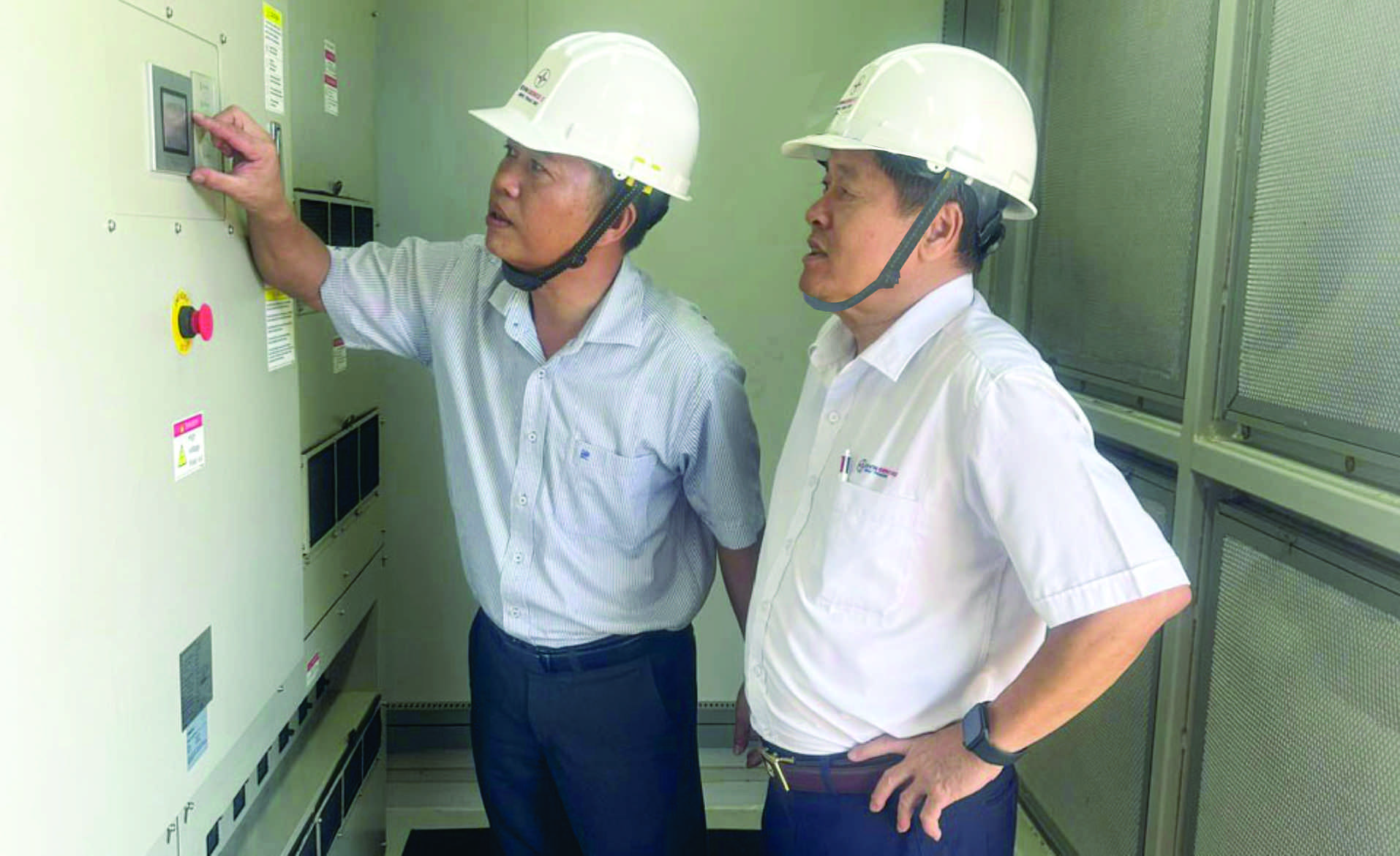 Tổng Giám đốc Nguyễn Văn Non (bên phải) xem xét tình trạng hoạt động Inverter ĐMT