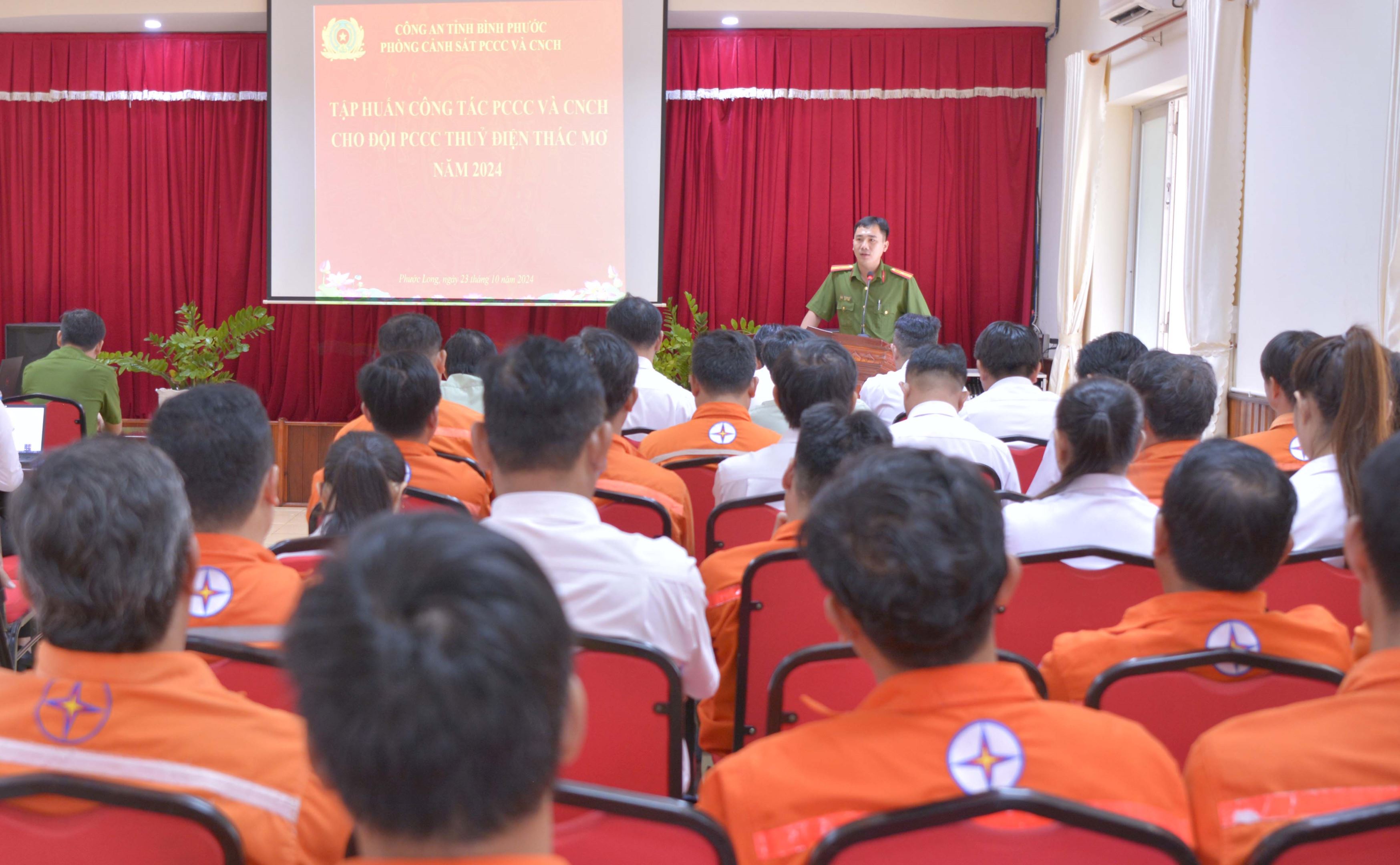 Cán bộ Phòng Cảnh sát PCCC & CNCH phổ biến nội dung tập huấn