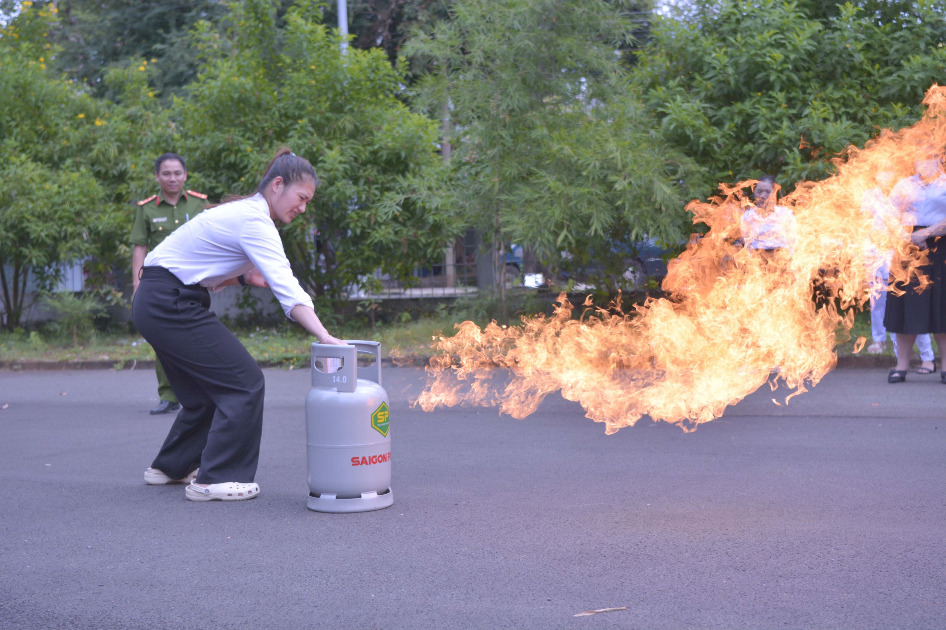 Học viên thực hành kỹ năng khống chế lửa bình gas