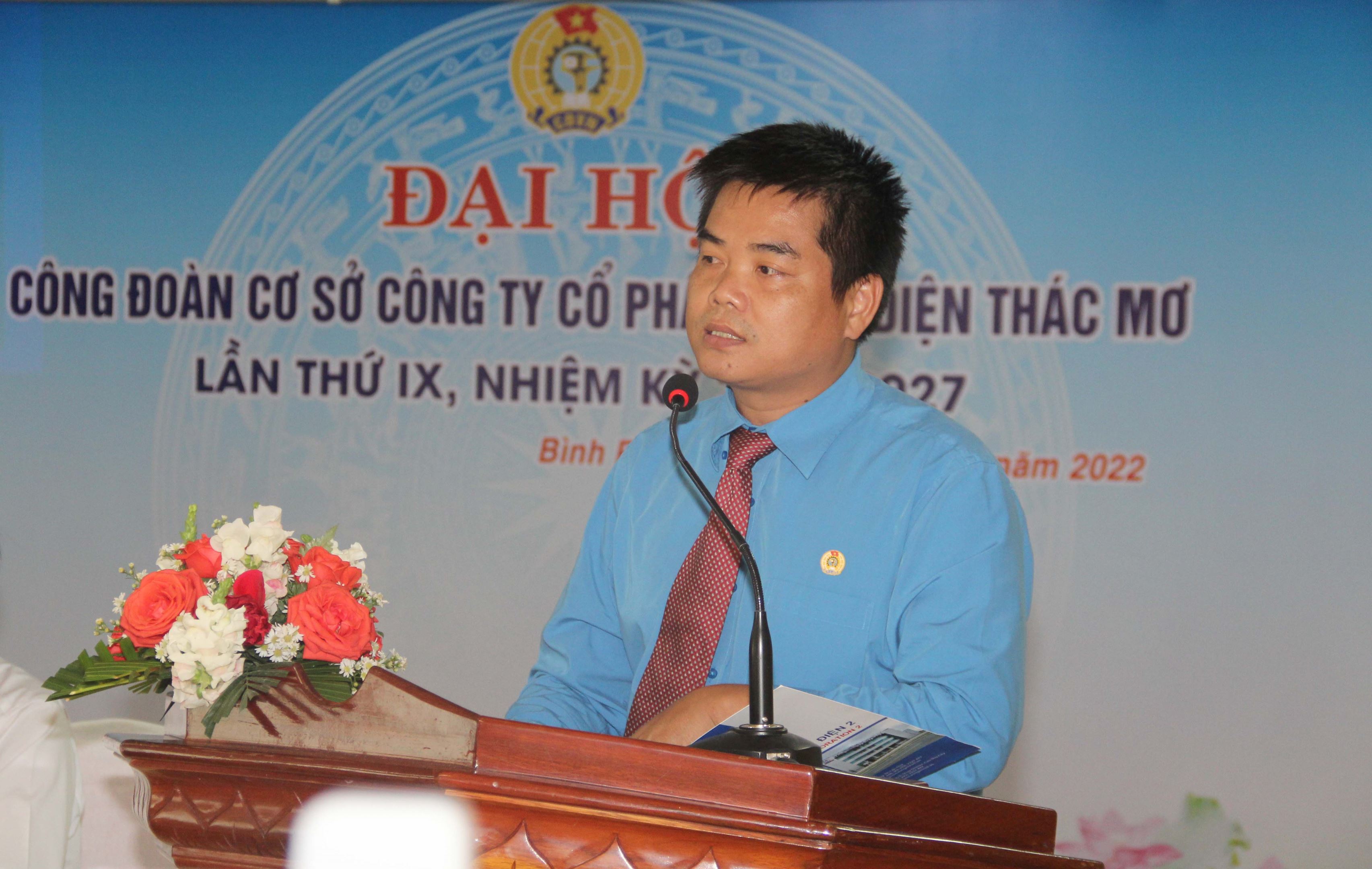 Phát biểu chỉ đạo tại Đại hội, ông Nguyễn Văn Ngộ - Phó Chủ tịch Công đoàn EVNGENCO2 biểu dương những nỗ lực của BCH Công đoàn cùng toàn thể đoàn viên, người lao động (NLĐ) trong thời gian qua. Qua đây, ông đề nghị Công đoàn TMP tiếp tục thường xuyên quan tâm nắm bắt tâm tư, nguyện vọng của NLĐ; chú trọng đến công tác đào tạo, bồi dưỡng, quy hoạch đội ngũ cán bộ làm công tác Công đoàn; nâng cao hơn nữa đời sống tinh thần cho NLĐ.