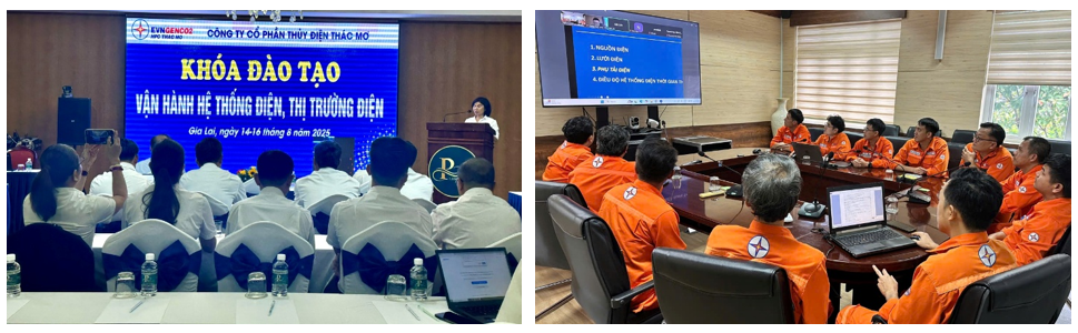 Ngoài ra, học viên còn được cập nhật kết quả vận hành 6 tháng đầu năm 2025, các phương án đảm bảo cung cấp điện trong mùa khô, đồng thời tham gia phân tích tình huống và thực hành thao tác xử lý sự cố trong Hệ thống điện Quốc gia, bao gồm nguyên tắc khởi động đen và khôi phục hệ thống.