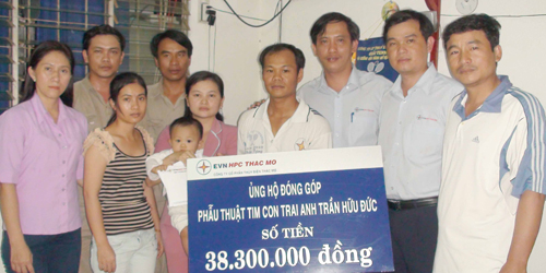 Trước tình cảnh hiện tại của gia đình anh Đức; tổ chức Công Đoàn, Đoàn thanh niên đã đến thăm và động viên gia đình; song song với việc thăm hỏi, Công đoàn vận động CBCNV trong Công ty đóng góp ủng hộ, viết thư ngỏ tới Công ty, tới Công đoàn EVN và đã được hưởng ứng tích cực, tổng số tiền ủng hộ từ các tổ chức và cá nhân là 38.300.000 đồng cùng nhiều vật phẩm giá trị khác…