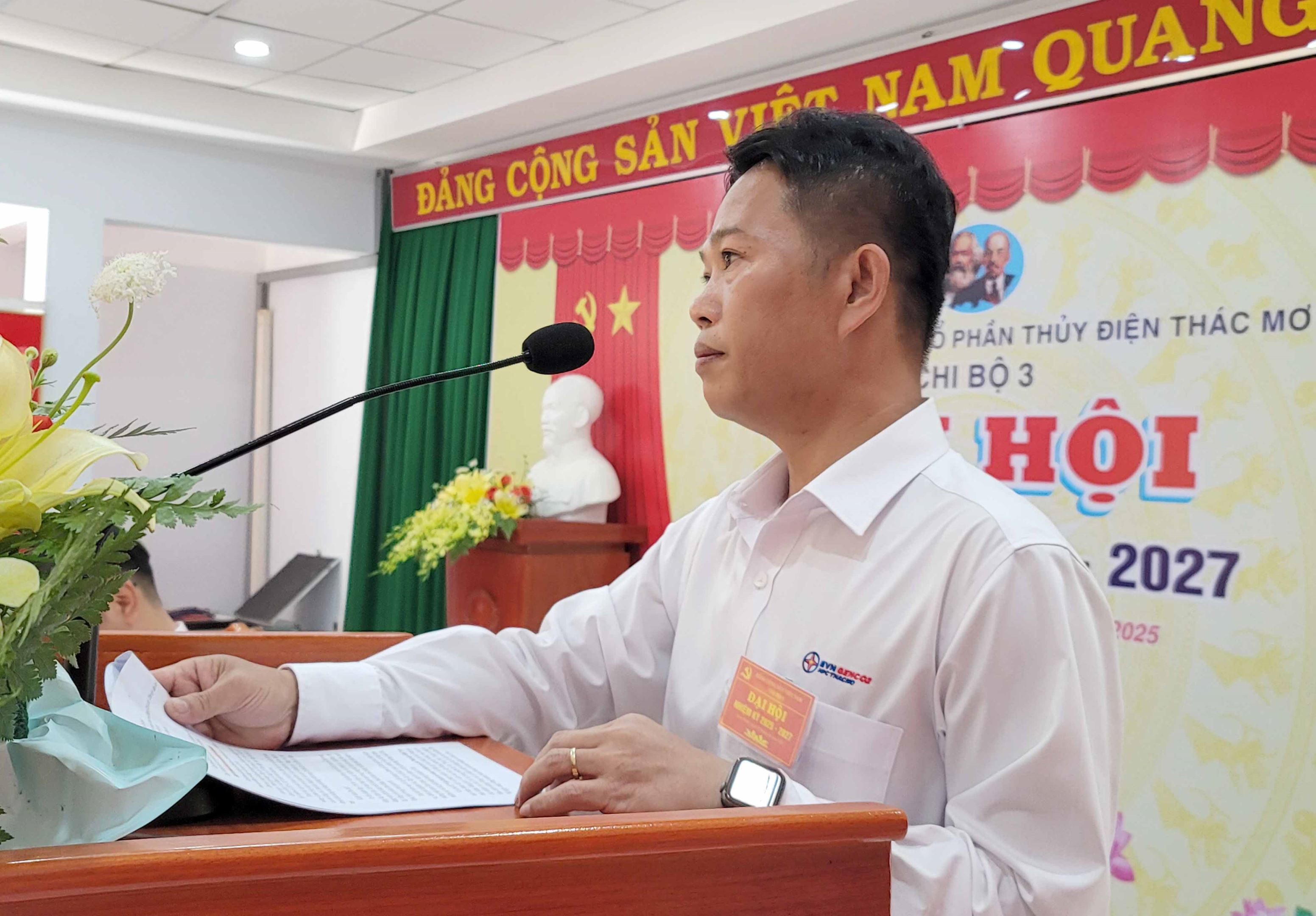 Đồng chí Võ Đoan Duy - Bí thư Chi bộ trình bày diễn văn khai mạc đại hội Chi bộ 3 nhiệm kỳ 2025 – 2027