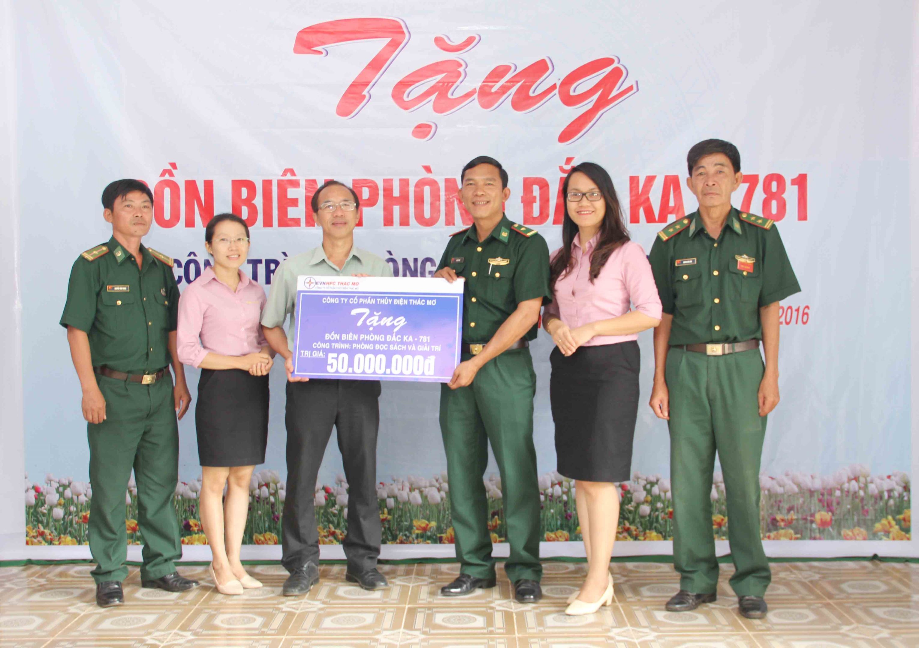 Từ nhiều năm nay, Công ty cổ phần thủy điện Thác Mơ Nguyên luôn dành những tình cảm đặc biệt đối với cán bộ chiến sĩ công tác, làm nhiệm vụ tại Đồn biên phòng 781- Đak’Ka, Công ty đã chỉ đạo Đoàn Thanh niên thiết kế và xây dựng trạm phát thủy điện 3.000VA, pin mặt trời 530VA kết nối với bộ ắc quy 7.200VA và máy phát điện diesel 5.000VA (dự phòng); tặng máy tính văn phòng, bàn ghế hội trường, xe gắn máy. tivi.v.v. . Nhằm tạo điều kiện nâng cao đời sống tinh thần cho các chiến sĩ đang thực thi nhiệm vụ bảo vệ chủ quyền biên giới, Công ty tài trợ cho Đồn biên phòng ĐắcKa 781 phòng đọc sách và giải trí trị giá 50 triệu đồng.