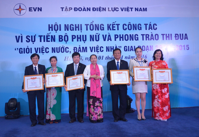 Nhân dịp này, 1 tập thể và 7 cá nhân thuộc Tập đoàn EVN và CĐ Điện lực VN đã được Ủy ban Quốc gia vì sự tiến bộ của phụ nữ VN tặng bằng khen vì đã có thành tích cao trong hoạt động vì sự tiến bộ của phụ nữ giai đoạn 2011-2015.
