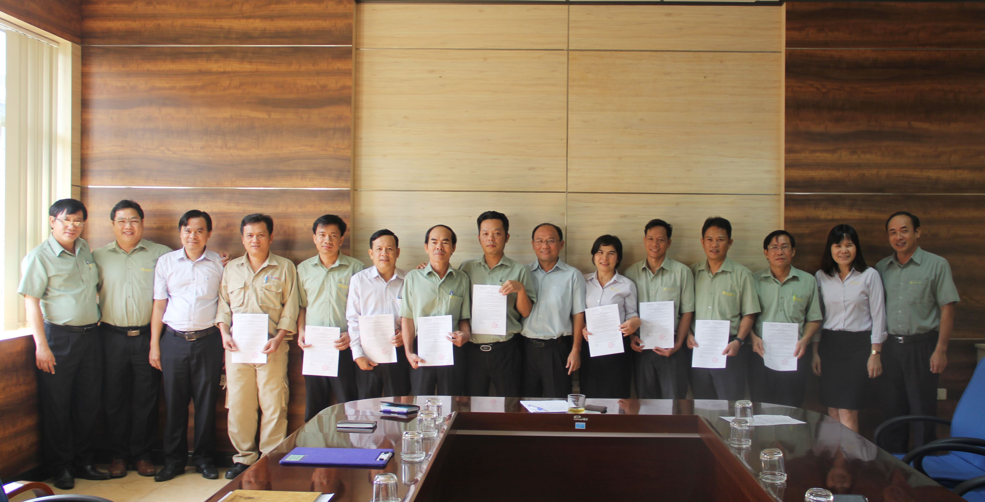 Ông Huỳnh Văn Khánh- Chủ tịch HĐQT công ty (thứ ba từ trái sang) trao quyết định bổ nhiệm cho các Trưởng đơn vị