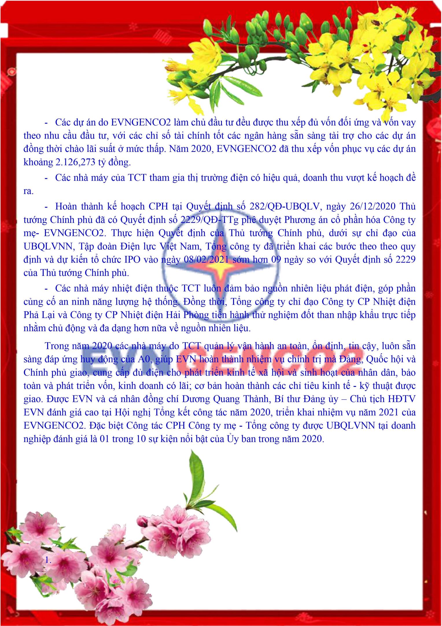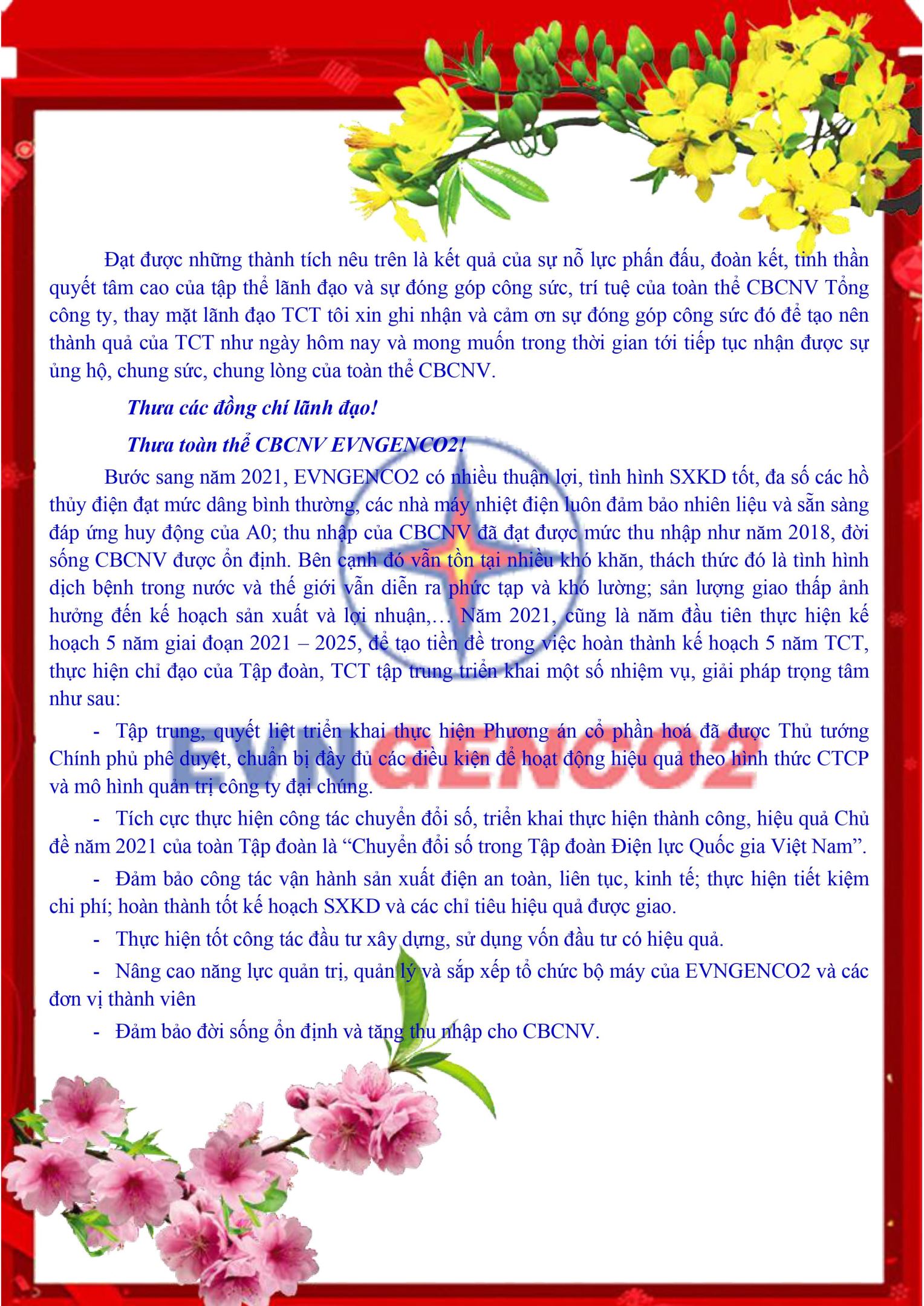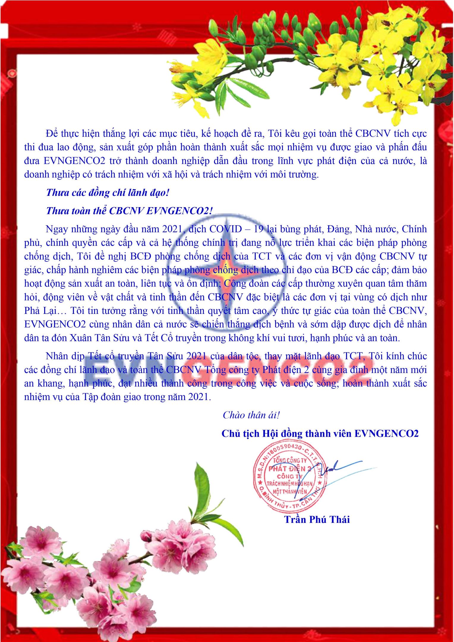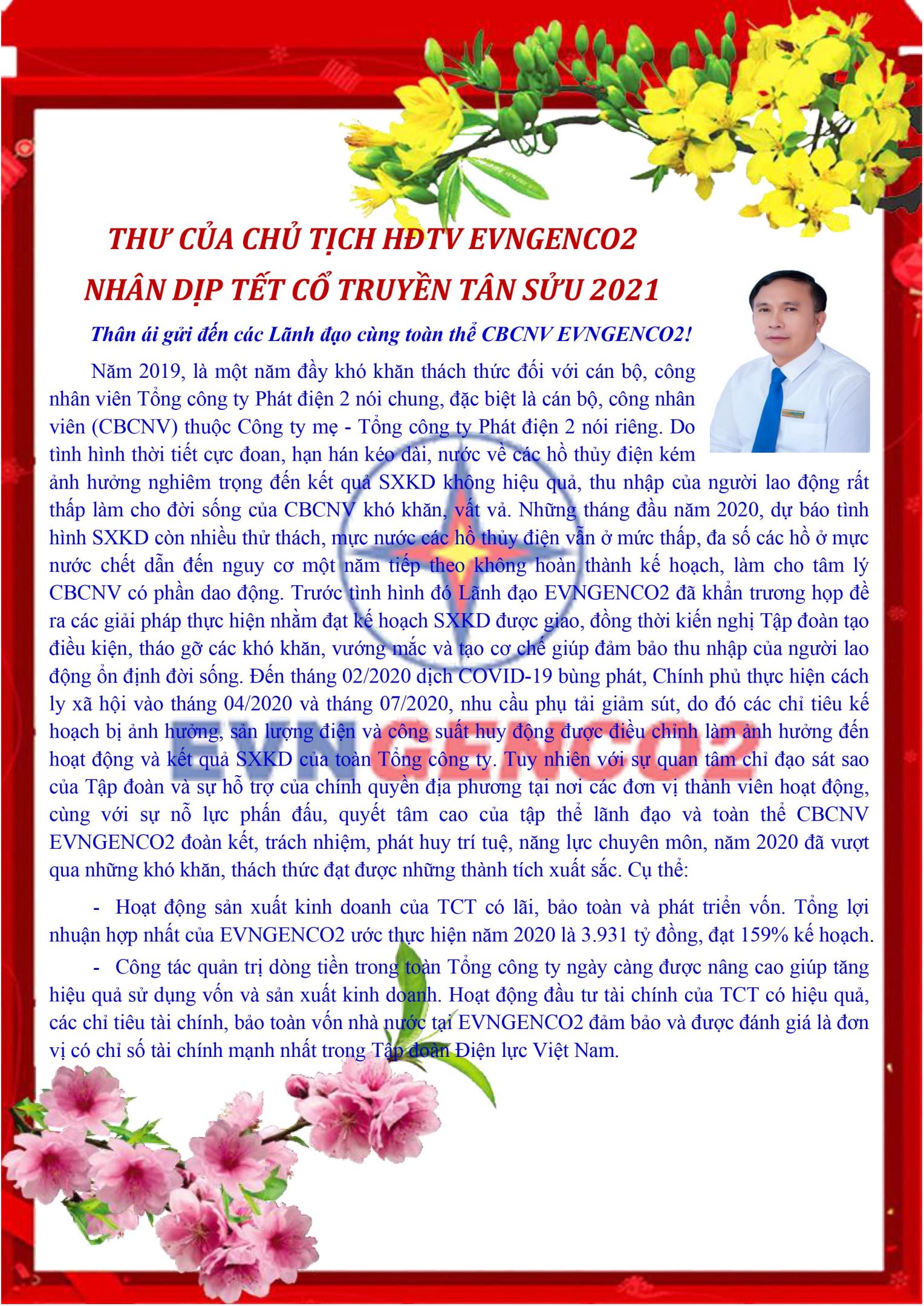 Thư của Chủ tịch HĐTV EVNGENCO 2 nhân dịp Tết cổ truyền Tân Sửu 2021