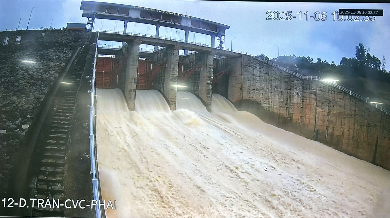 Lúc 10 giờ ngày 06/11/2025, Tổng giám đốc Công ty Cổ phần Thủy điện Thác Mơ đã ban hành Lệnh điều tiết nước hồ qua đập tràn (lệnh số 07), thực hiện mở bốn cửa van, tổng lưu lượng xả xuống hạ du đạt 384 m³/s.