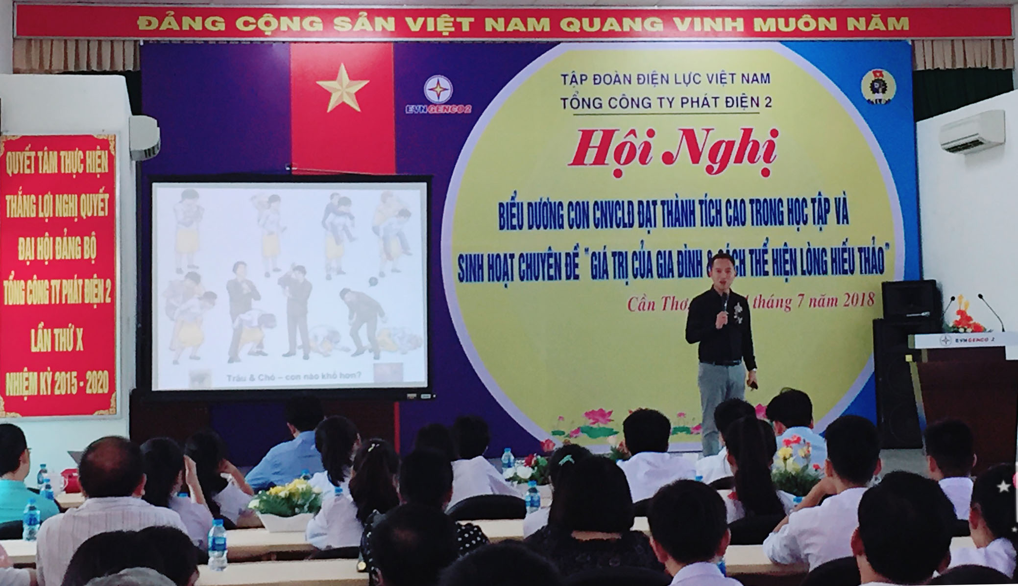 Ngày 24 đến 25 tháng 7 năm 2018, tại Hội trường khu QLVHSC Tổng Công ty Phát điện 2 đã diễn ra Hội nghị chuyên đề “Giá trị của gia đình & cách thể hiện lòng hiếu thảo” do Tiến sỹ Nguyễn Hoàng Khắc Hiếu – Giảng viên Khoa Tâm lý học, Trường Đại học Sư Phạm TP.HCM dẫn dắt. Tham dự Hội nghị có sự hiện diện của ông Trương Thiết Hùng- Chủ tịch Tổng Công ty, ông Nguyễn Duy Lăng- Chủ tịch công đoàn Tổng Công ty, đại diện Ban VSTBPN và Công đoàn, Ban Nữ công các đơn vị thuộc Tổng Công ty cùng gần 50 em học sinh được biểu dương, khen thưởng. Các em học sinh đã rất hào hứng, cùng tranh luận và đưa ra những chính kiến của bản thân về giá trị gia đình trong thời đại ngày nay.