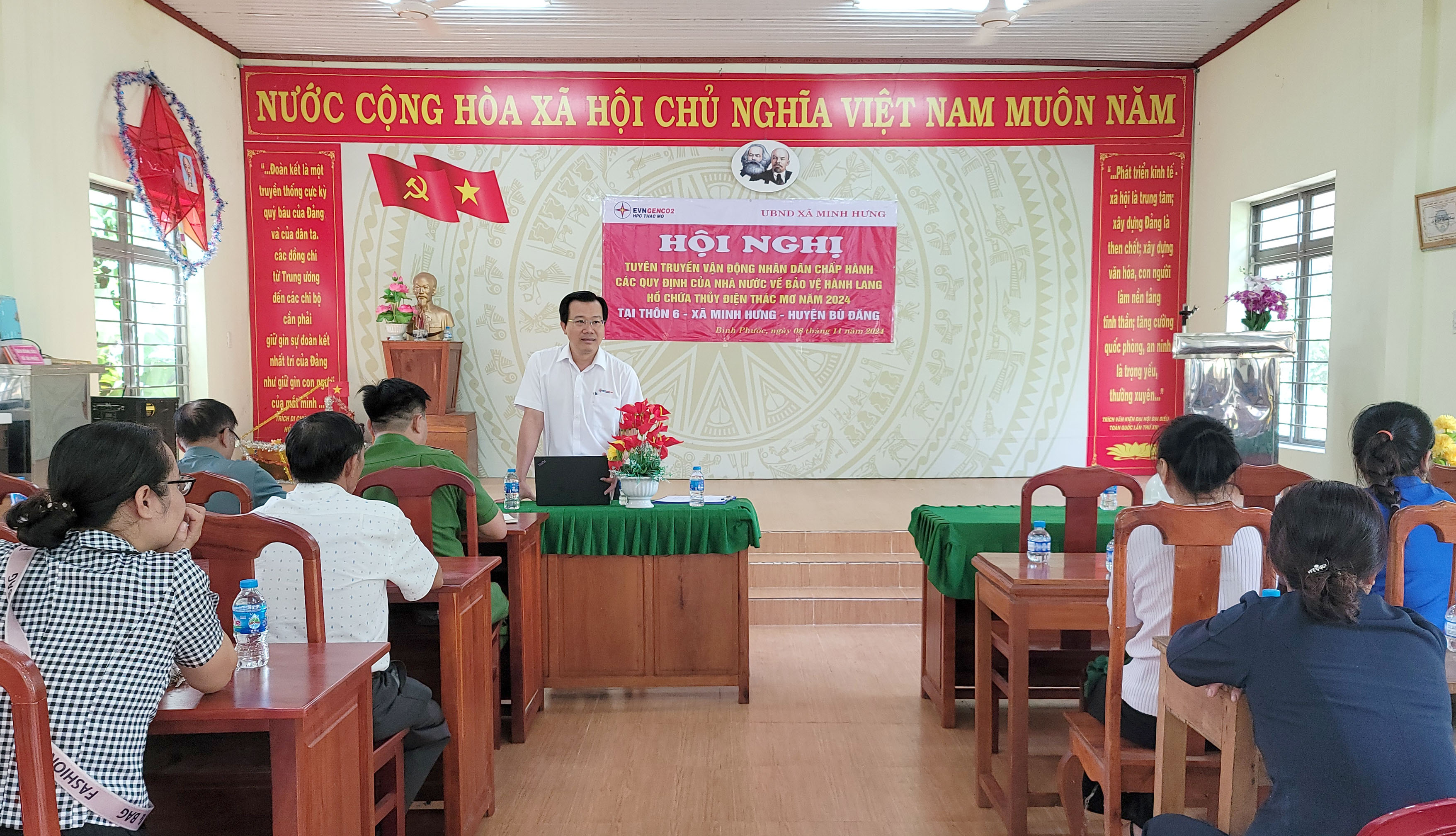 Ngày 08/11/2024, Công ty Cổ phần Thủy điện Thác Mơ (TMP) đã đến tổ chức “Hội nghị Tuyên truyền, vận động nhân dân chấp hành các quy định của Nhà nước về bảo vệ hành lang hồ chứa Thủy điện Thác Mơ” tại thôn 6, xã Minh Hưng, huyện Bù Đăng. Tại hội nghị, cán bộ chuyên trách TMP đã phổ biến các văn bản pháp lý, pháp luật, các quy định bảo vệ hành lang công trình hồ chứa Thủy điện. Trong đó, nêu rõ các hành vi bị cấm trong phạm vi bảo vệ đập; một số quy định xử phạt vi phạm hành chính trong phạm vi bảo vệ đập, hồ chứa Thủy điện. Bên cạnh đó, TMP và chính quyền địa phương còn hướng dẫn và giải đáp các thắc mắc, giúp người dân thuận tiện trong sản xuất, nâng cao đời sống.