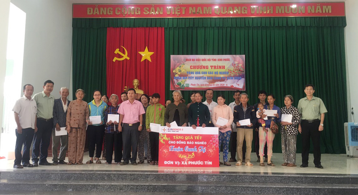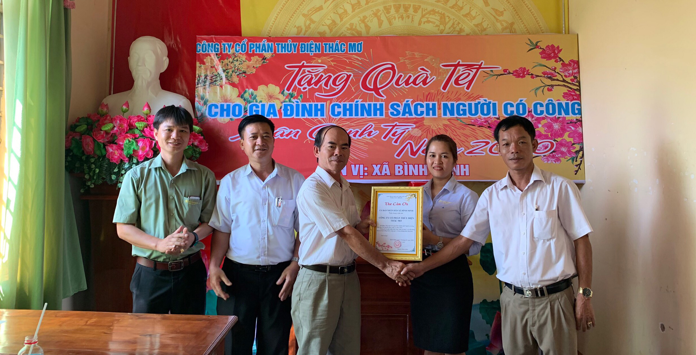 Nhằm động viên và chia sẻ khó khăn với các hộ nghèo, gia đình chính sách mỗi dịp Tết đến Xuân về. Ngày 10 và 14/01/2020, tại các địa phương xã Bom Bo, xã Bình Minh, xã Đoàn Kết huyện Bù Đăng, xã Phước Tín, xã Long Giang, phường Thác Mơ, phường Long Thủy thị xã Phước Long, xã Đức Hạnh huyện Bù Gia Mập, Công ty Cổ phần Thủy điện Thác Mơ đã tổ chức trao, tặng 250 phần quà tết cho các hộ nghèo và gia đình chính sách tại các địa phương nói trên, mỗi phần quà trị giá 400 ngàn đồng. Tổng số tiền trao tặng 100 triệu đồng.