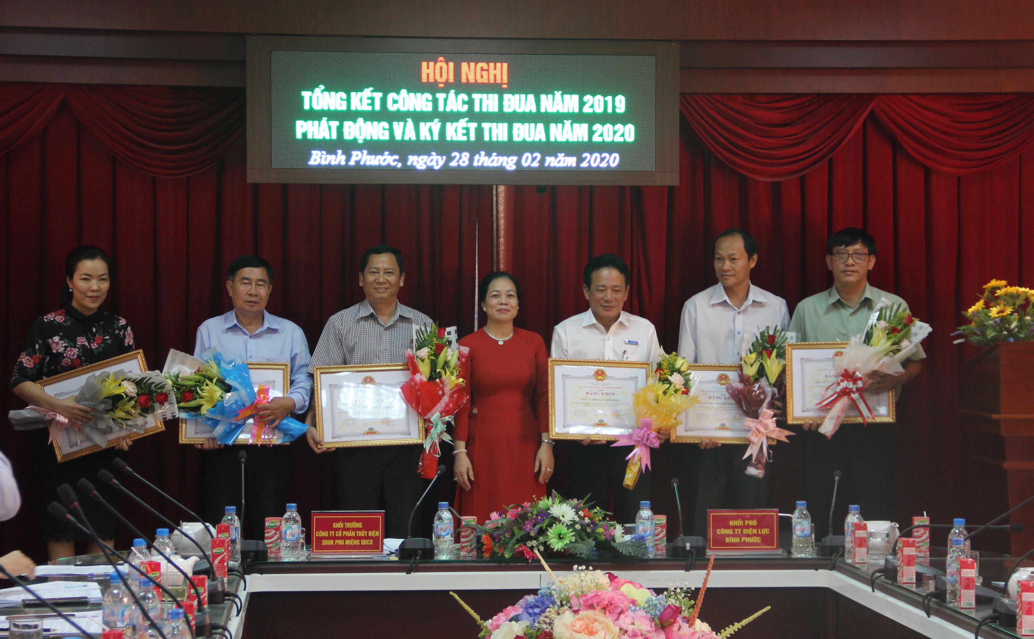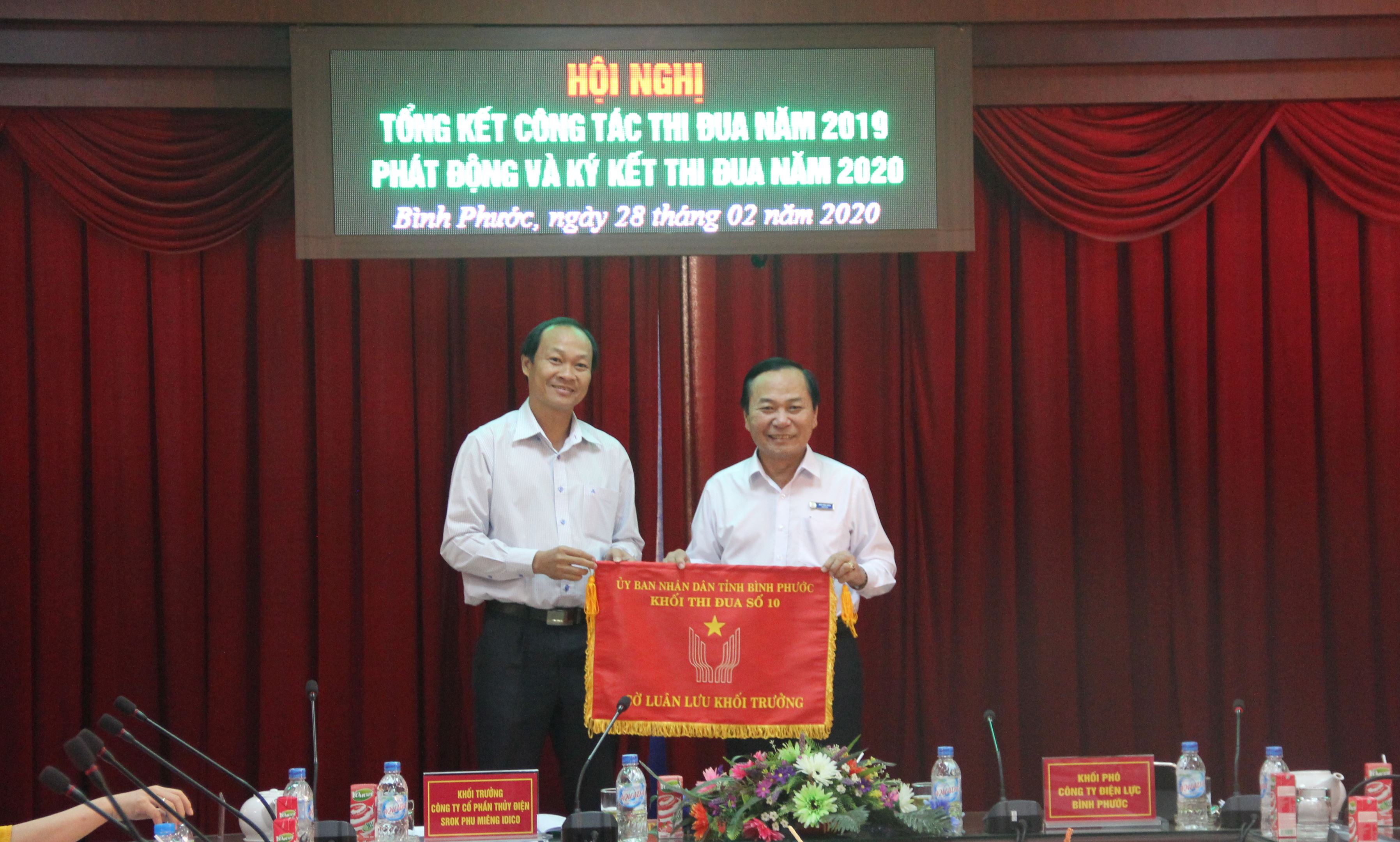 Cũng trong Hội nghị Công ty Cổ phần Thuỷ điện Srok Phu Miêng IDICO- Khối trưởng Khối thi đua số 10 năm 2019 đã trao cờ luân lưu Khối trưởng cho Công ty Điện lực Bình Phước- Khối trưởng Khối thi đua số 10 năm 2020.