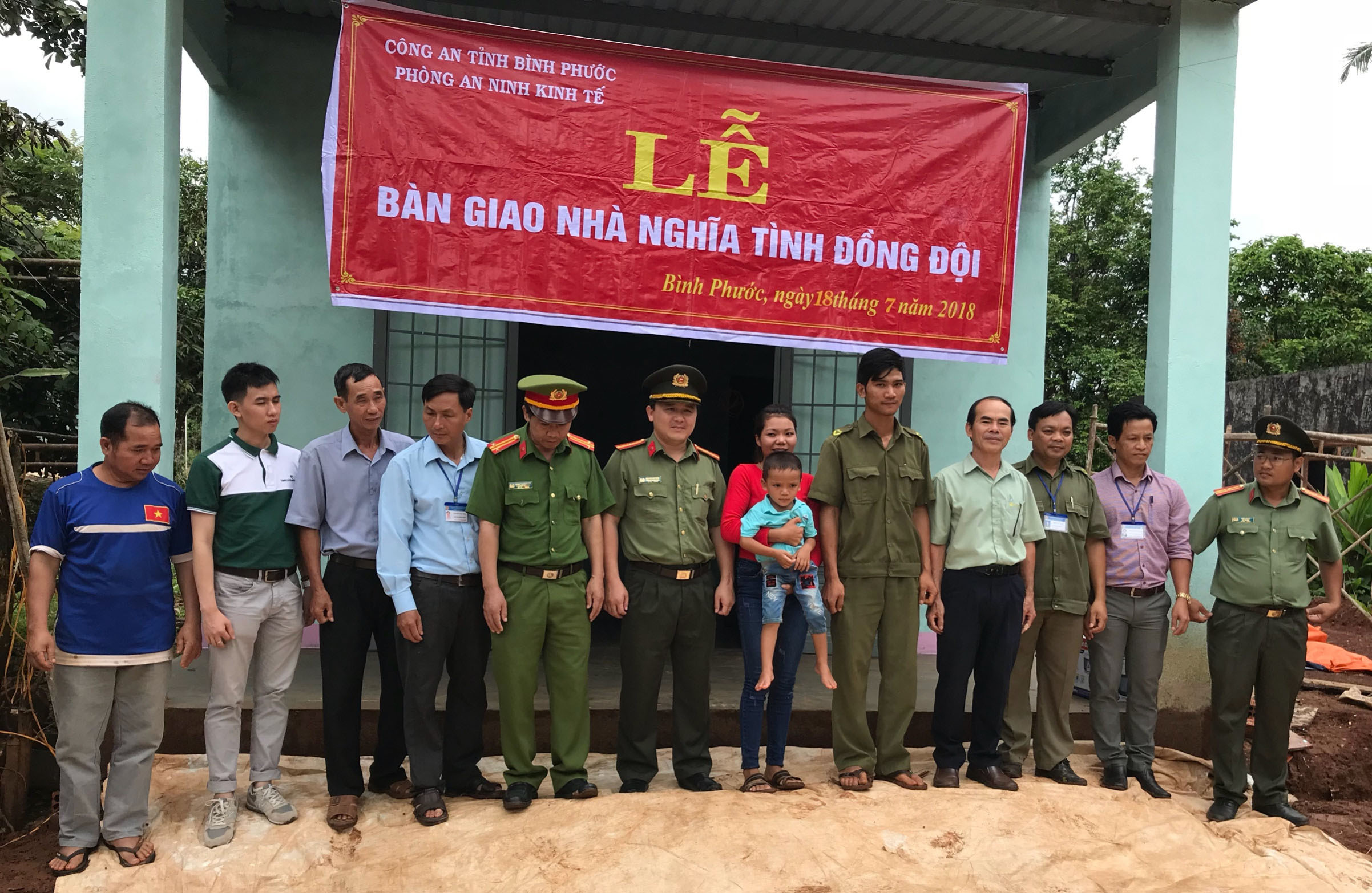 Trong hai ngày 18 và 26 tháng 7 năm 2018 vừa qua, 02 căn nhà đã hoàn thành, Công an tỉnh Bình Phước và Công ty Cổ phần Thủy điện Thác Mơ đã tổ chức trao tặng cho 02 chiến sĩ công an thuộc diện khó khăn, công tác tại xã Đăk-Ơ, huyện Bù Gia Mập và xã Bom Bo, huyện Bù Đăng. Ngôi nhà có diện tích 60m2 đã thắp lên niềm vui cho gia đình nhỏ, giúp gia đình ổn định cuộc sống và yên tâm công tác, tạo động lực hoàn thành tốt công tác được giao.