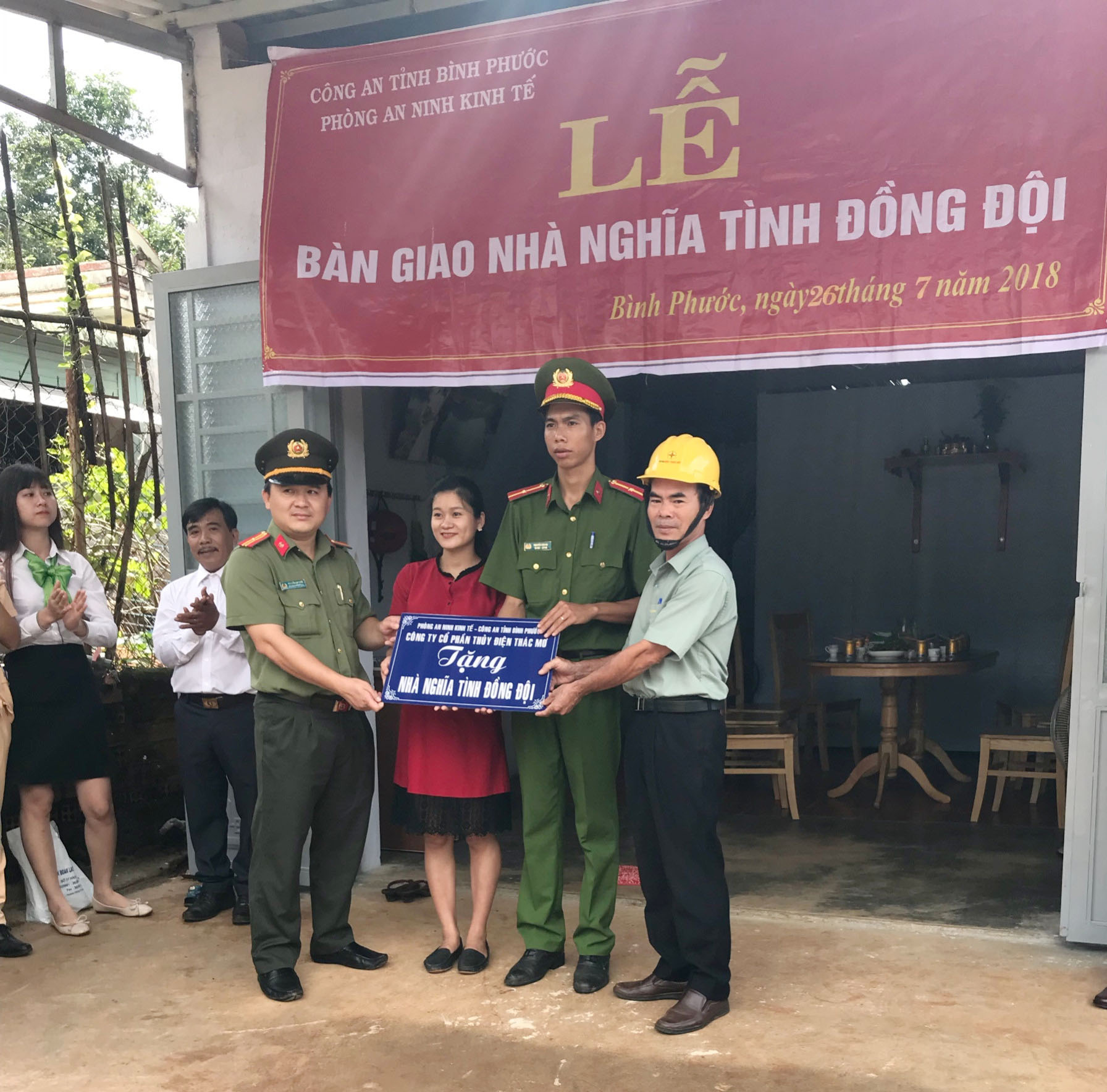 Trong năm 2018, Công ty Cổ phần Thuỷ điện Thác Mơ đã phối hợp với Công an tỉnh Bình Phước xây dựng 02 căn nhà nghĩa tình đồng đội, kinh phí xây dựng mỗi căn nhà 50 triệu đồng trao tặng cho 02 chiến sĩ Công an có hoàn cảnh khó khăn tại hai đơn vị trực thuộc Công an huyện Bù Gia Mập và huyện Bù Đăng.