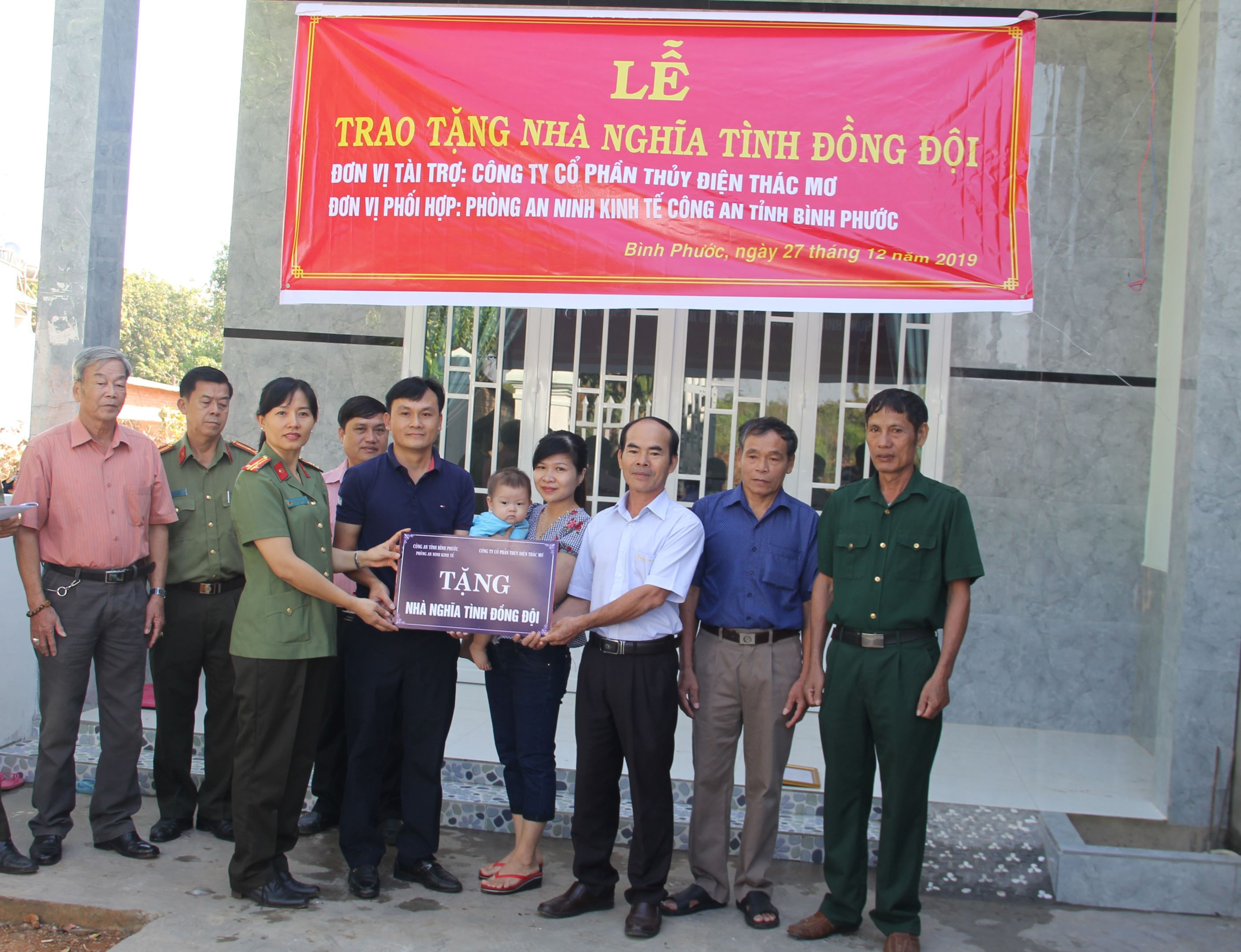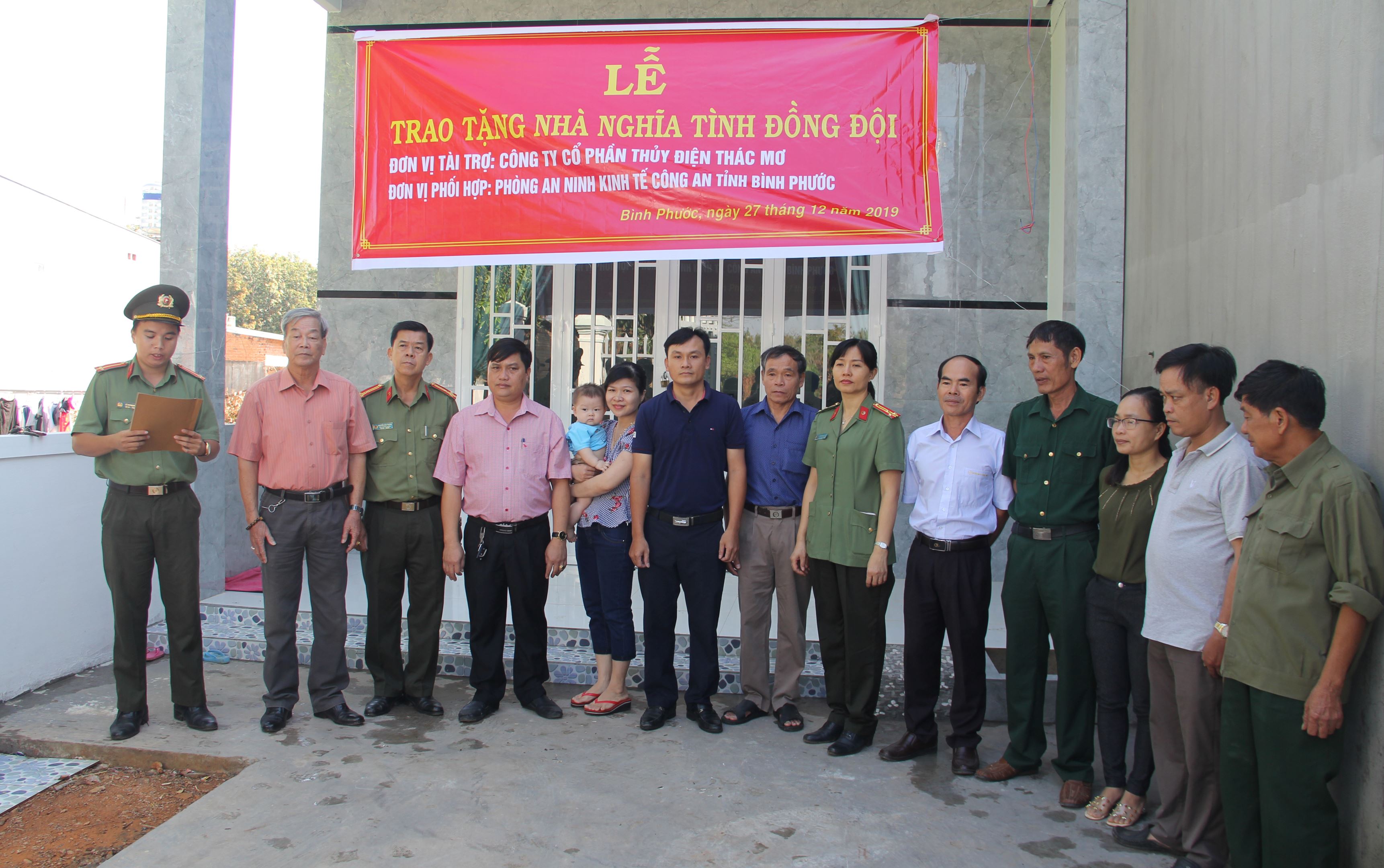 Tham dự buổi lễ có thượng tá Trần Thị Minh Thiển – Chi uỷ viên, phó trưởng Phòng An ninh Kinh tế, ông Nguyễn Văn Thuận – phó Bí thư Đảng uỷ, phó trưởng Phòng Công tác Đảng và Công tác Chính trị công an tỉnh Bình Phước, ông Phạm Như Nhật- Phó chánh Văn phòng Công ty Cổ phần Thuỷ điện Thác Mơ và các đồng chí đại diện cấp uỷ, chính quyền địa phương và bà con ấp 2, xã Tân Thành, thành phố Đồng Xoài cùng tham dự.