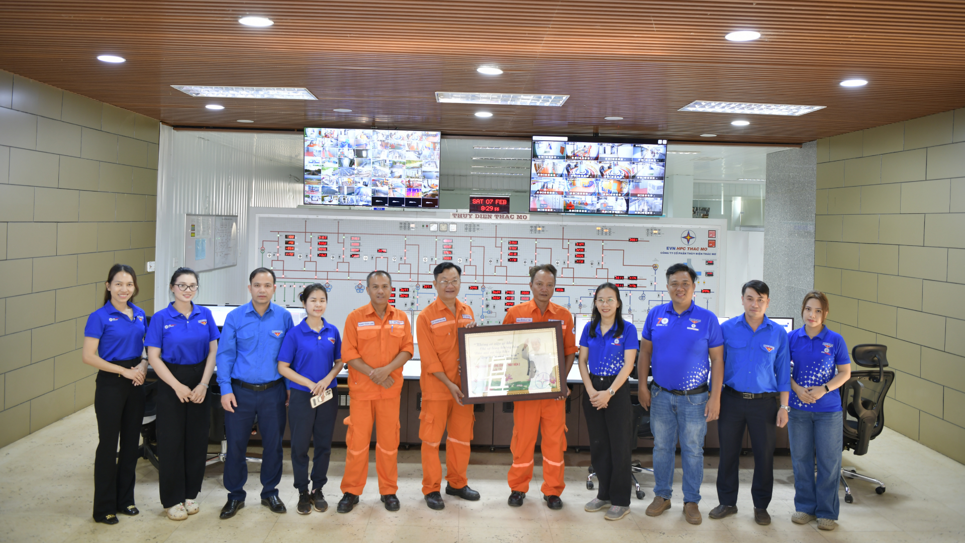 Đại diện Phân xưởng Vận hành nhận quà lưu niệm của Đoàn Thanh niên EVNGENCO2