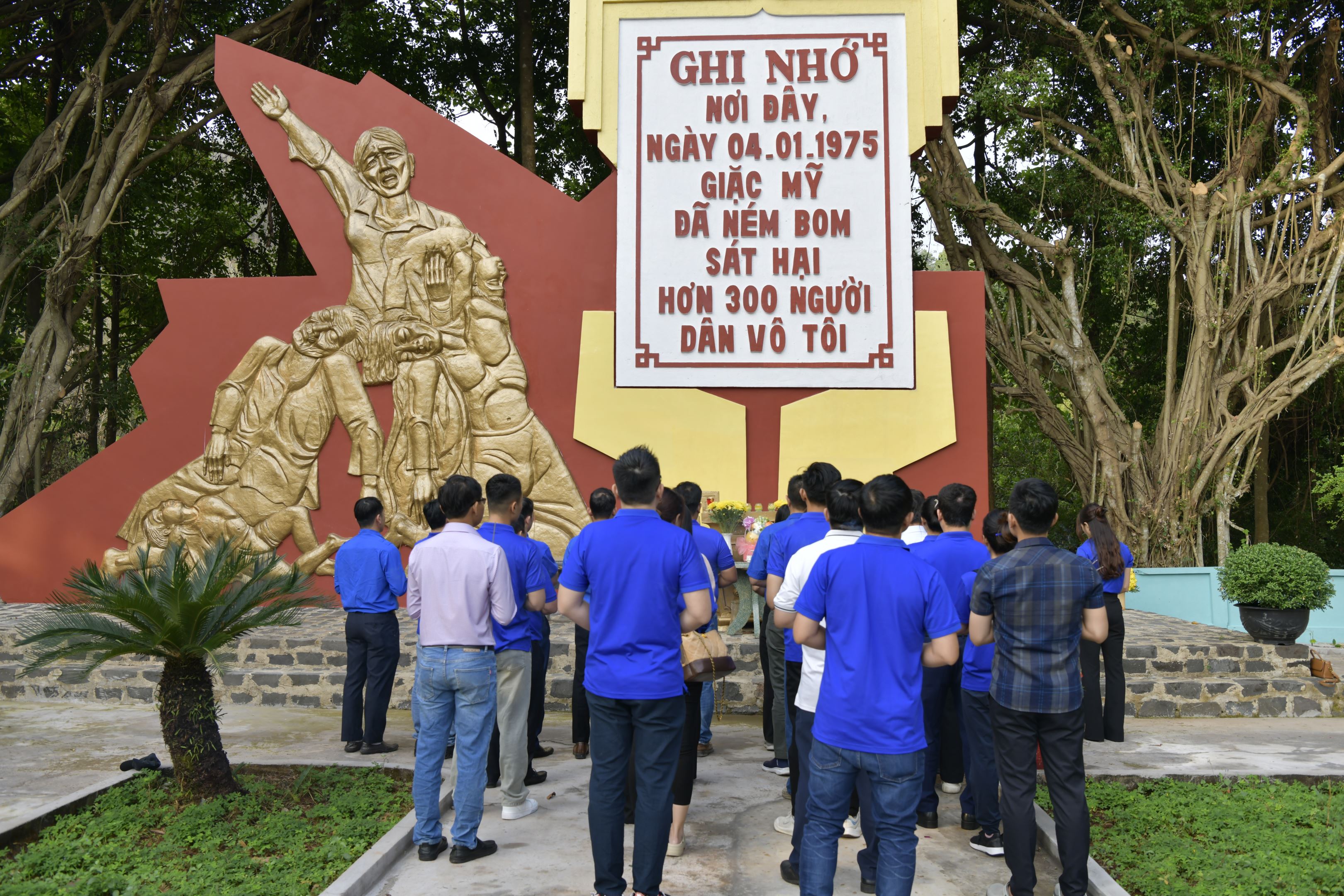 Trong không khí trang nghiêm và thành kính, Đoàn công tác đã thành kính dâng hương tưởng niệm, bày tỏ lòng tri ân và niềm tiếc thương sâu sắc đối với hơn 300 người dân vô tội đã hy sinh do bom đạn chiến tranh.