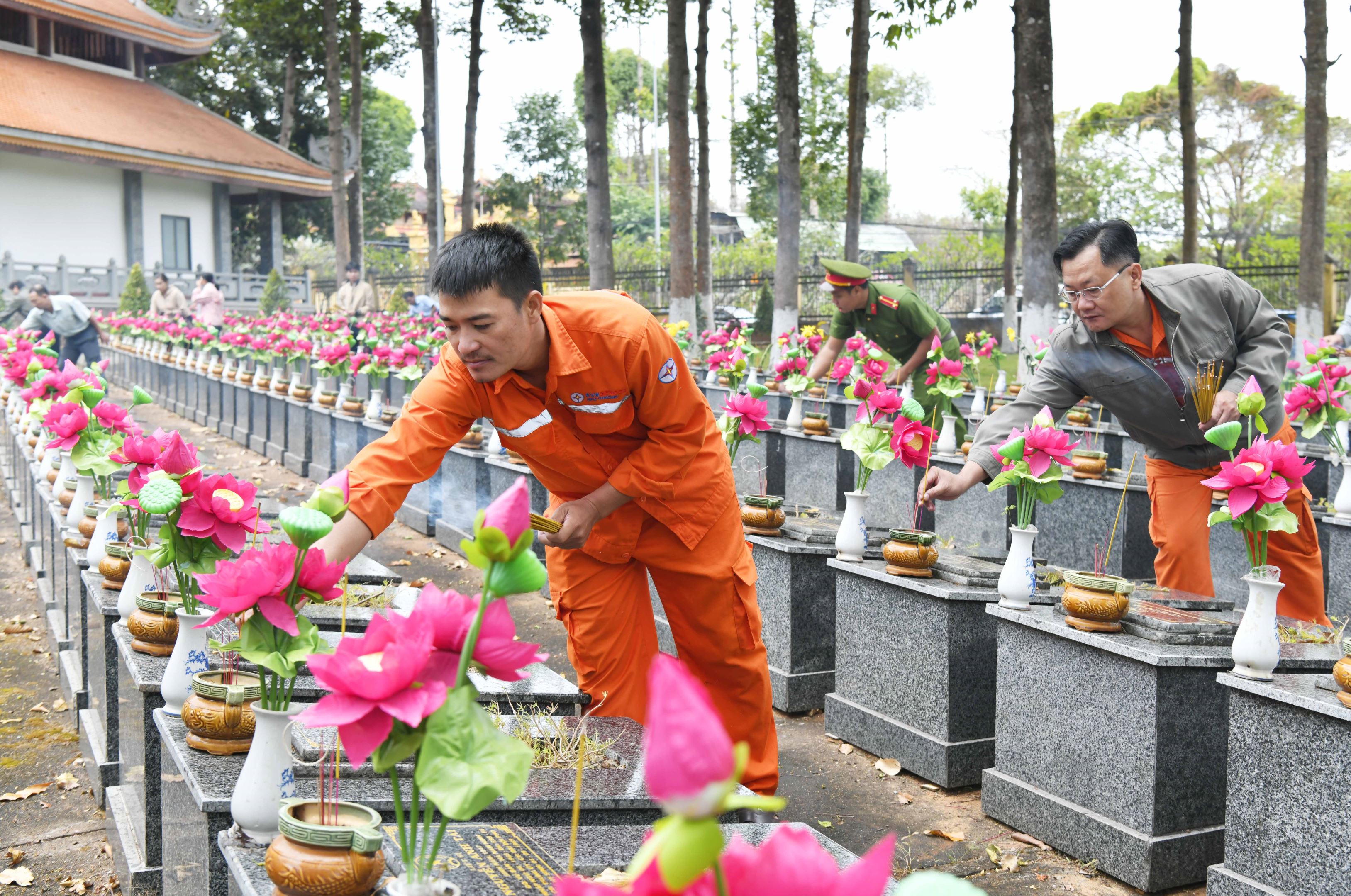 CBVC Thủy điện Thác Mơ cùng quân, dân thị xã Phước Long thắp hương tri ân, tưởng nhớ các anh hùng liệt sĩ.