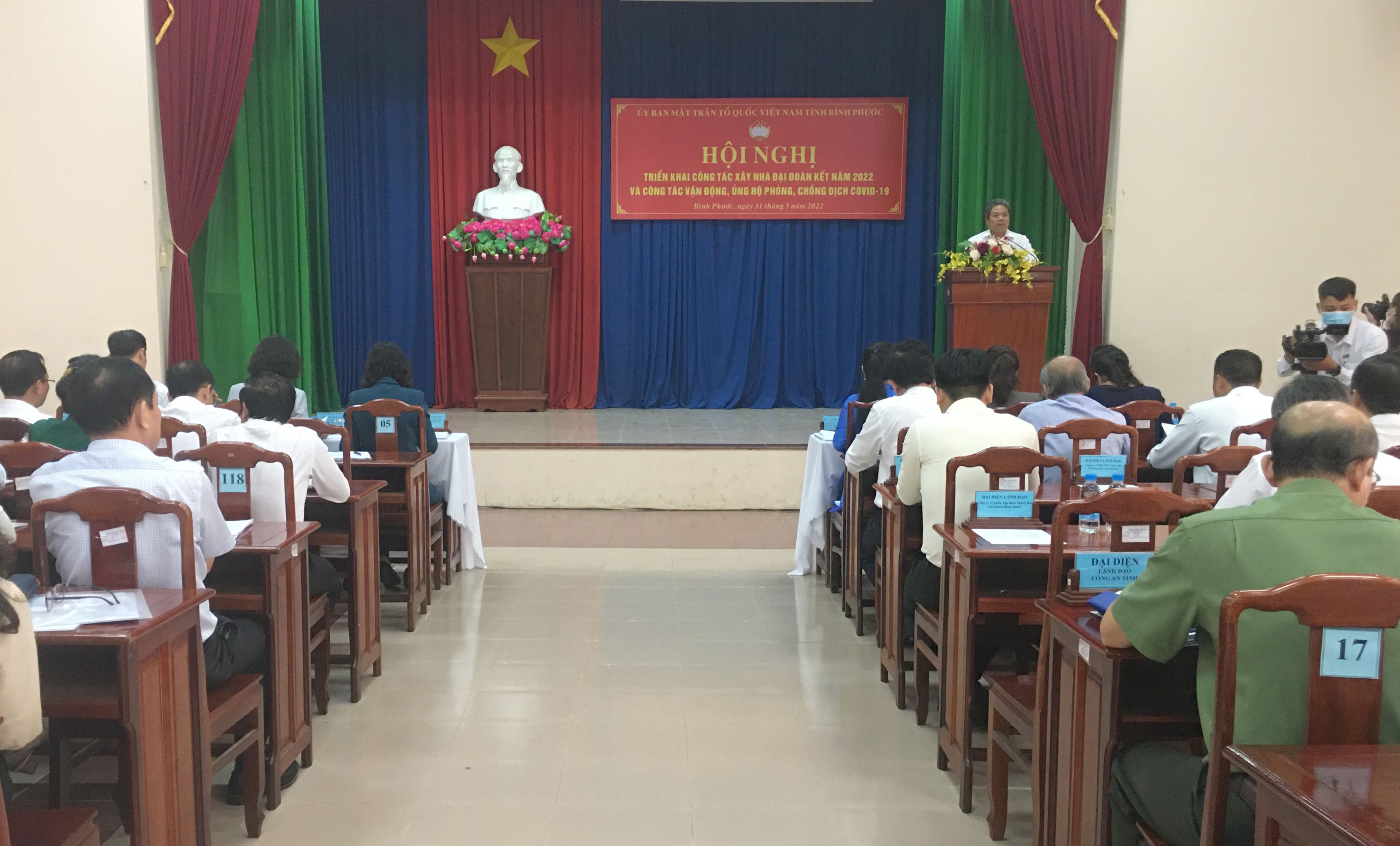 Phó chủ tịch Ủy ban MTTQ Việt Nam tỉnh Đỗ Đại Đồng thông qua báo cáo sơ kết công tác xây dựng nhà đại đoàn kết và công tác ủng hộ, phòng chống dịch Covid-19 năm 2021