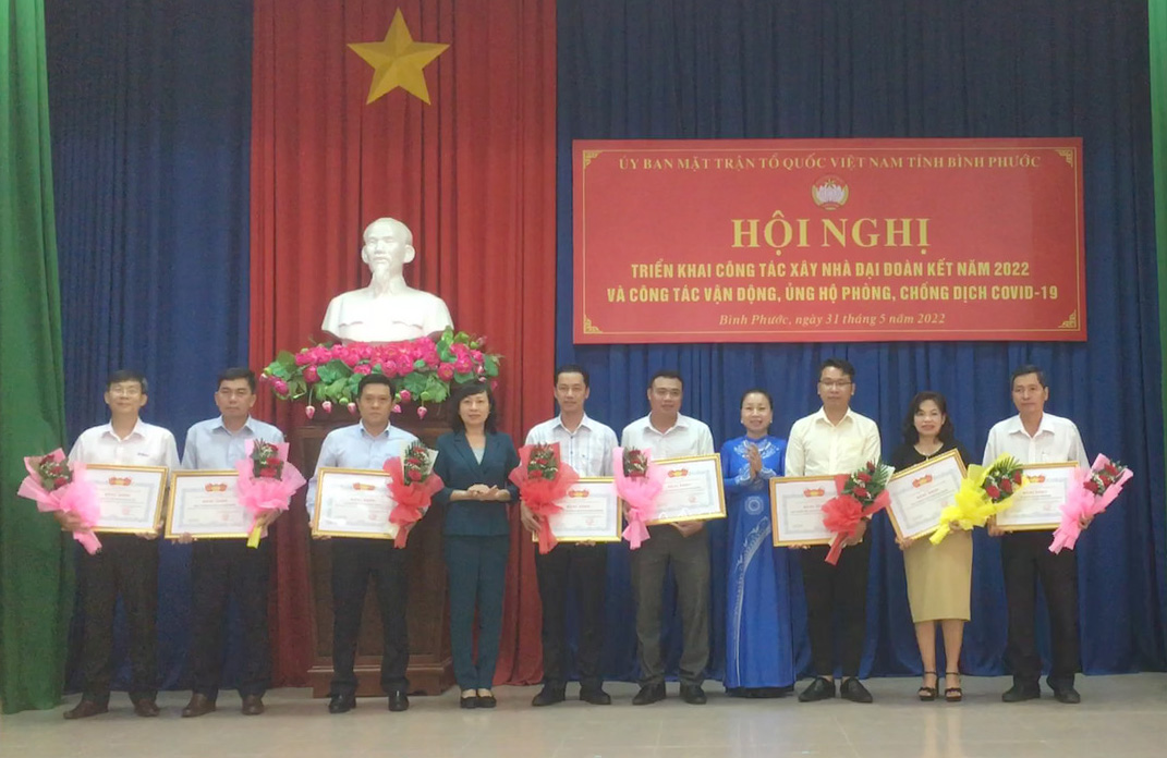 Dịp này, Ủy ban MTTQ Việt Nam tỉnh Bình Phước tuyên dương, khen thưởng cho TMP cùng 9 tập thể có thành tích nổi bật trong thành tích trong công tác an sinh xã hội của tỉnh năm 2021.