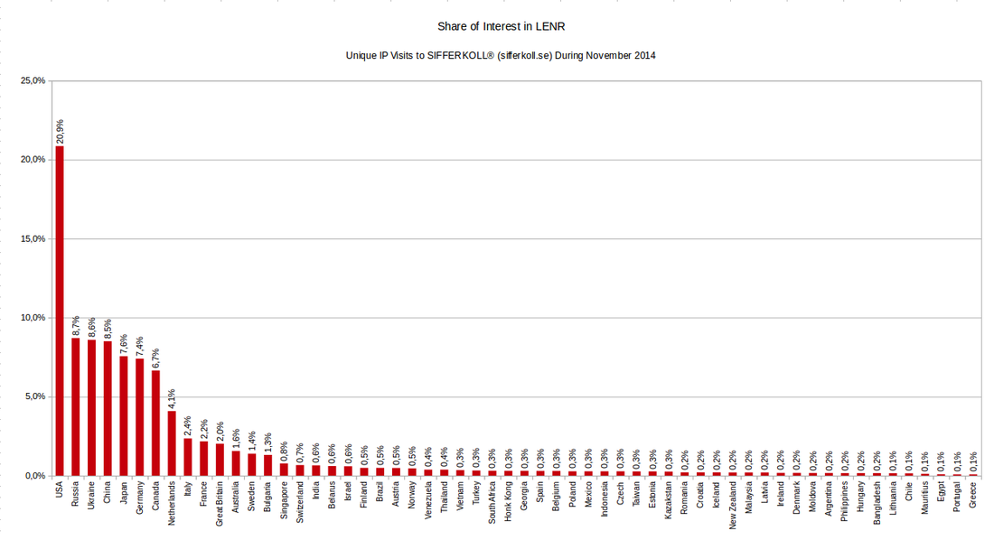 Sự quan tâm đến công nghệ hợp hạch lạnh của các nước trong tháng 11/2014 (theo Sifferkoll)