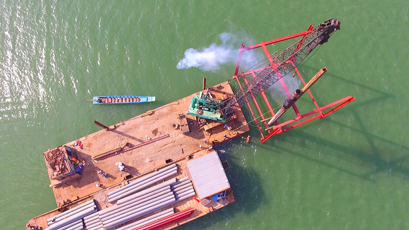 Một loạt các công việc chuẩn bị đã và đang được nhà thầu này triển khai như gia công cốp pha móng, thành, cột; gia công lắp dựng sàn đạo thép để đóng cọc thử, khung định vị; lập hệ thống lưới quan trắc; sản xuất cọc thử; nạo vét luồng lạch, định vị tim móng trụ...