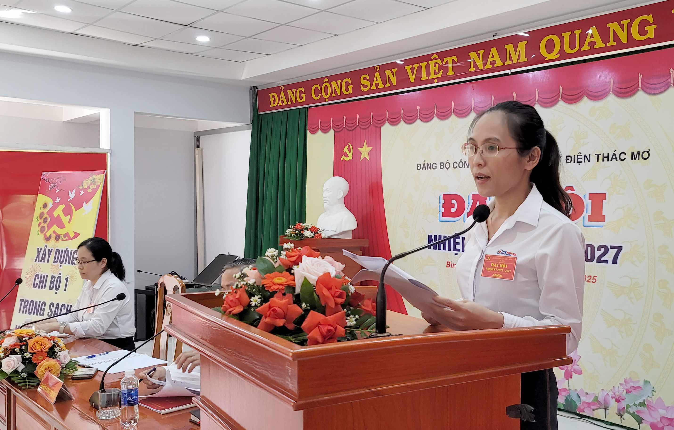 Đ/c Hồ Nguyễn Phương Trâm - Bí thư Chi bộ 1 báo cáo trước Đại hội