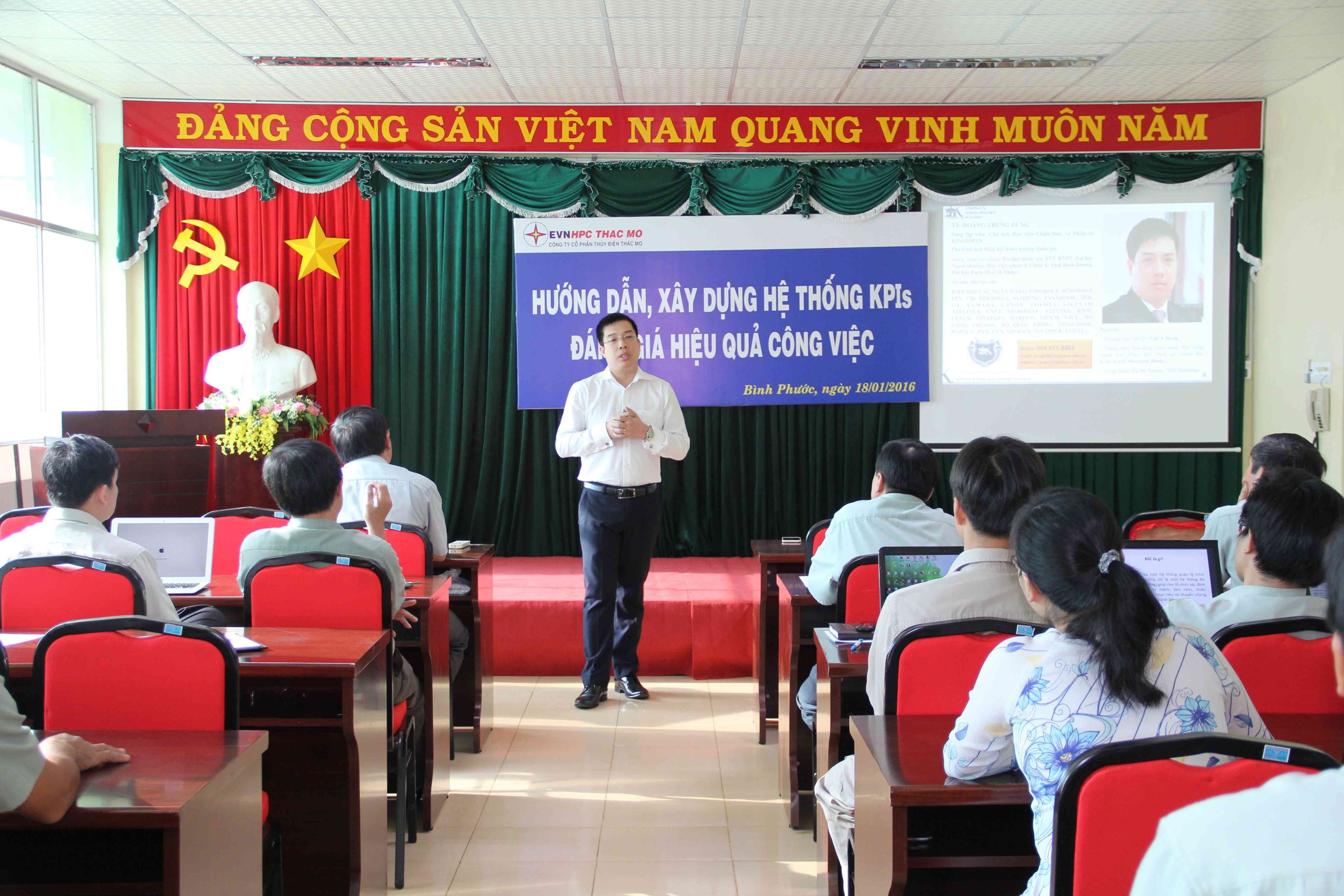 Tham gia khóa hướng dẫn có Tiến sĩ Hoàng Trung Dũng – Học viện chiến lược và nhân sự Kingsman cùng toàn thể CB.CNV Công ty, với phần lý thuyết thông minh, thể hiện cụ thể cho từng chức danh công, qua đó nâng cao hiệu quả công việc khi ứng dụng KPI vào sản xuất kinh doanh của Công ty.
